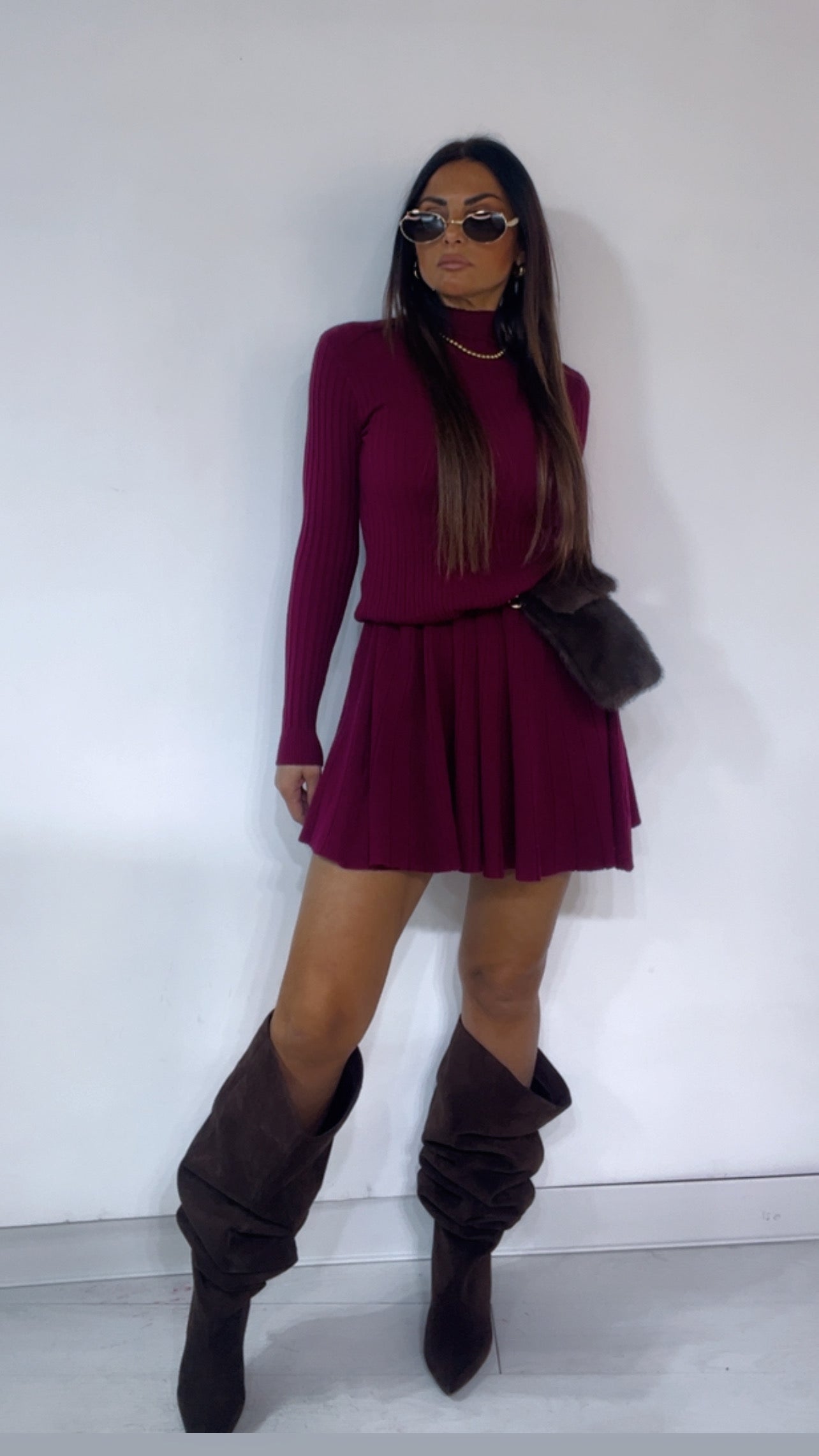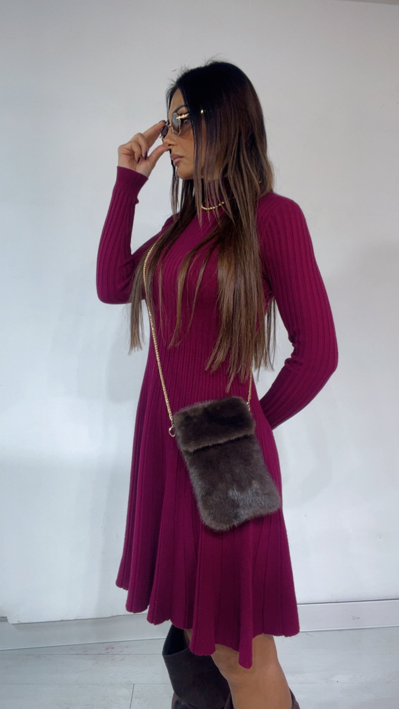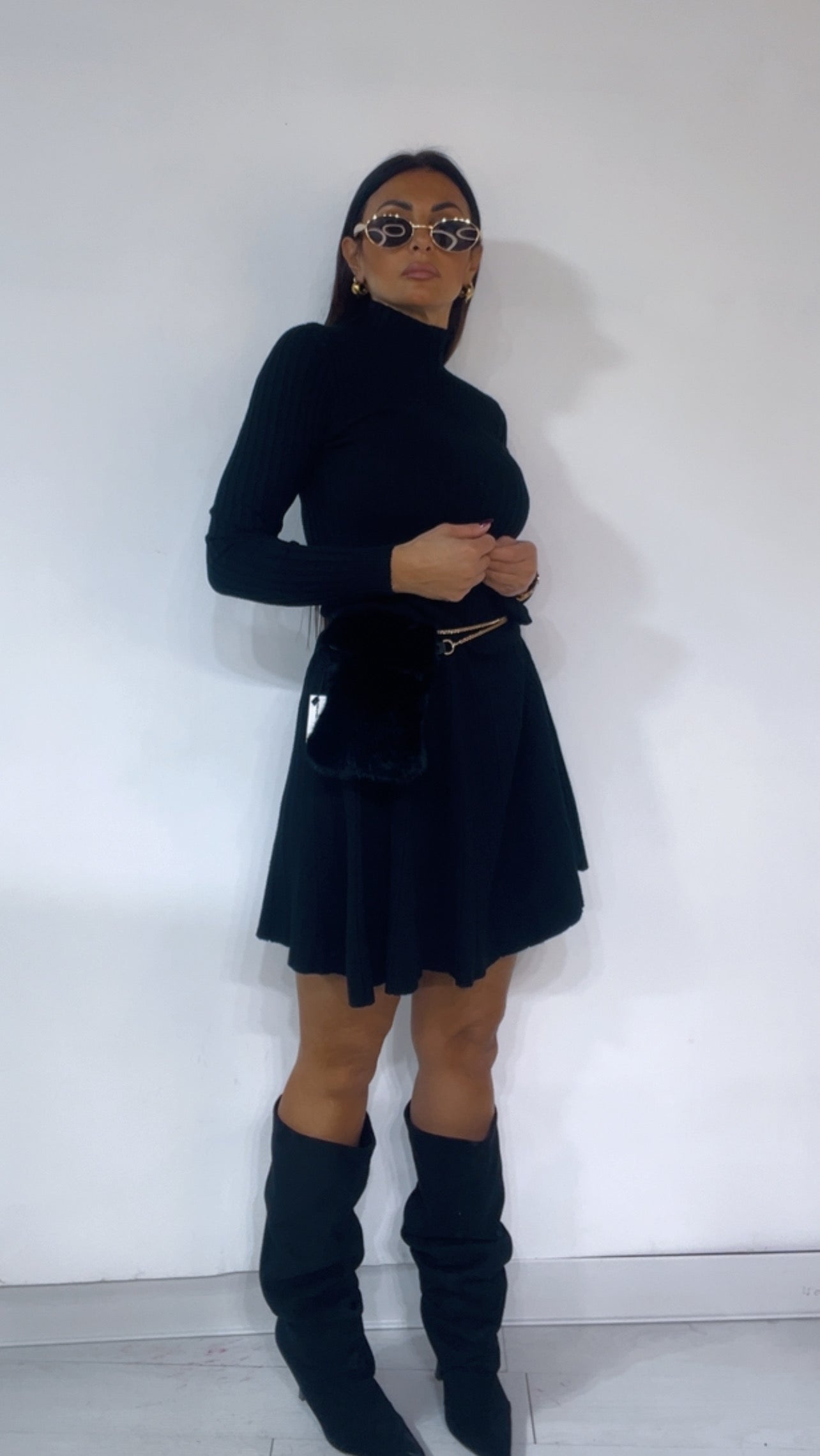 Abito in tessuto 'lanetta' a costine,con collo 'mezzo lupetto' e fondo a 'campaana'.