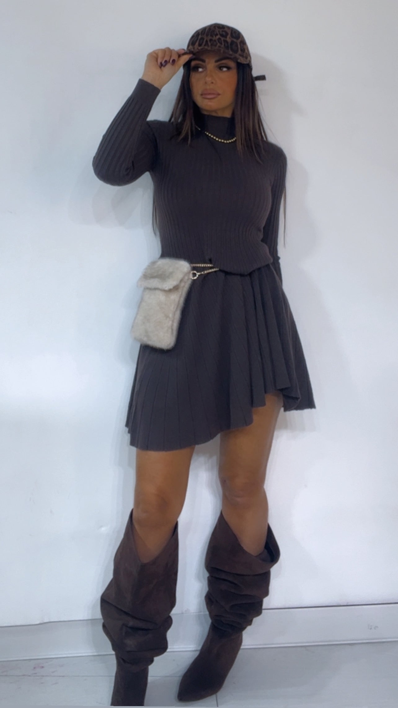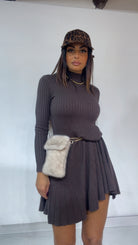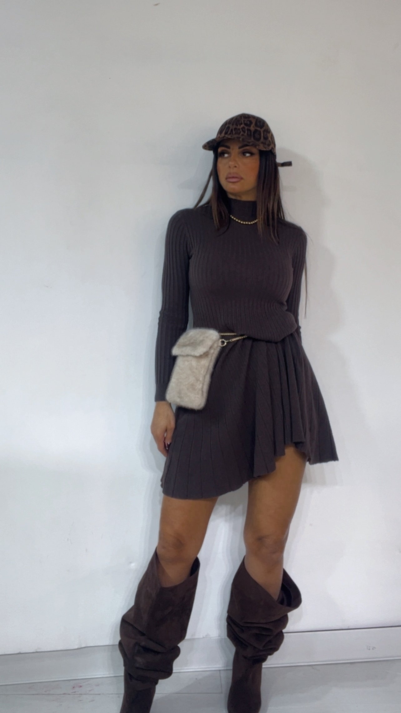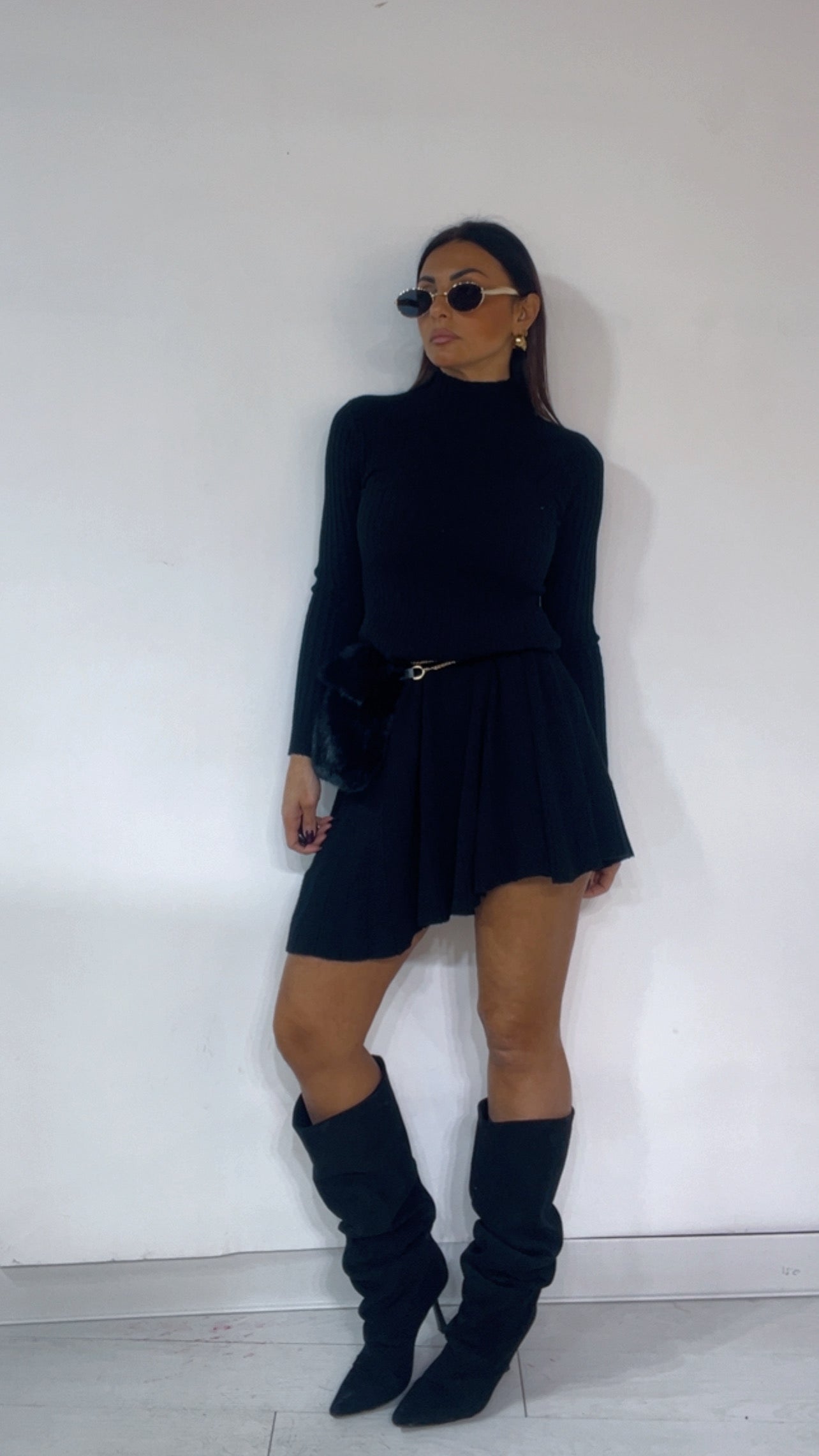 Abito in tessuto 'lanetta' a costine,con collo 'mezzo lupetto' e fondo a 'campaana'.