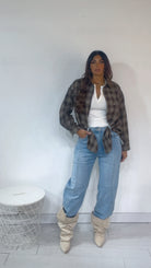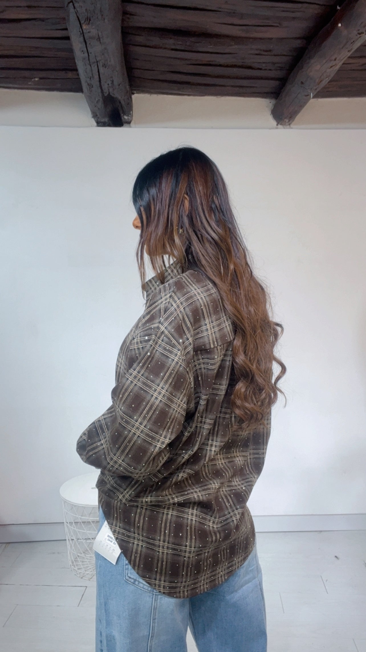 Camicia fantasia ‘Tartan’, con applicazione di ‘Strass’, taschino laterale.