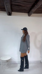 Abito/Camicione fantasia ‘Gessata’, Tasconi’ con ‘Pettine’ davanti, ‘Tasche e Spacchi’ laterali. In ‘Flanella’.