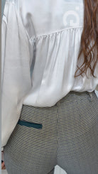 Camicia ‘Simona G’ particolare sulle ‘Spalle’, manica a ‘Sbuffo’. In ‘Raso’.