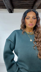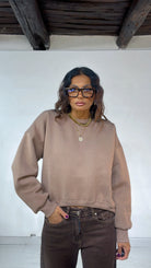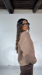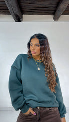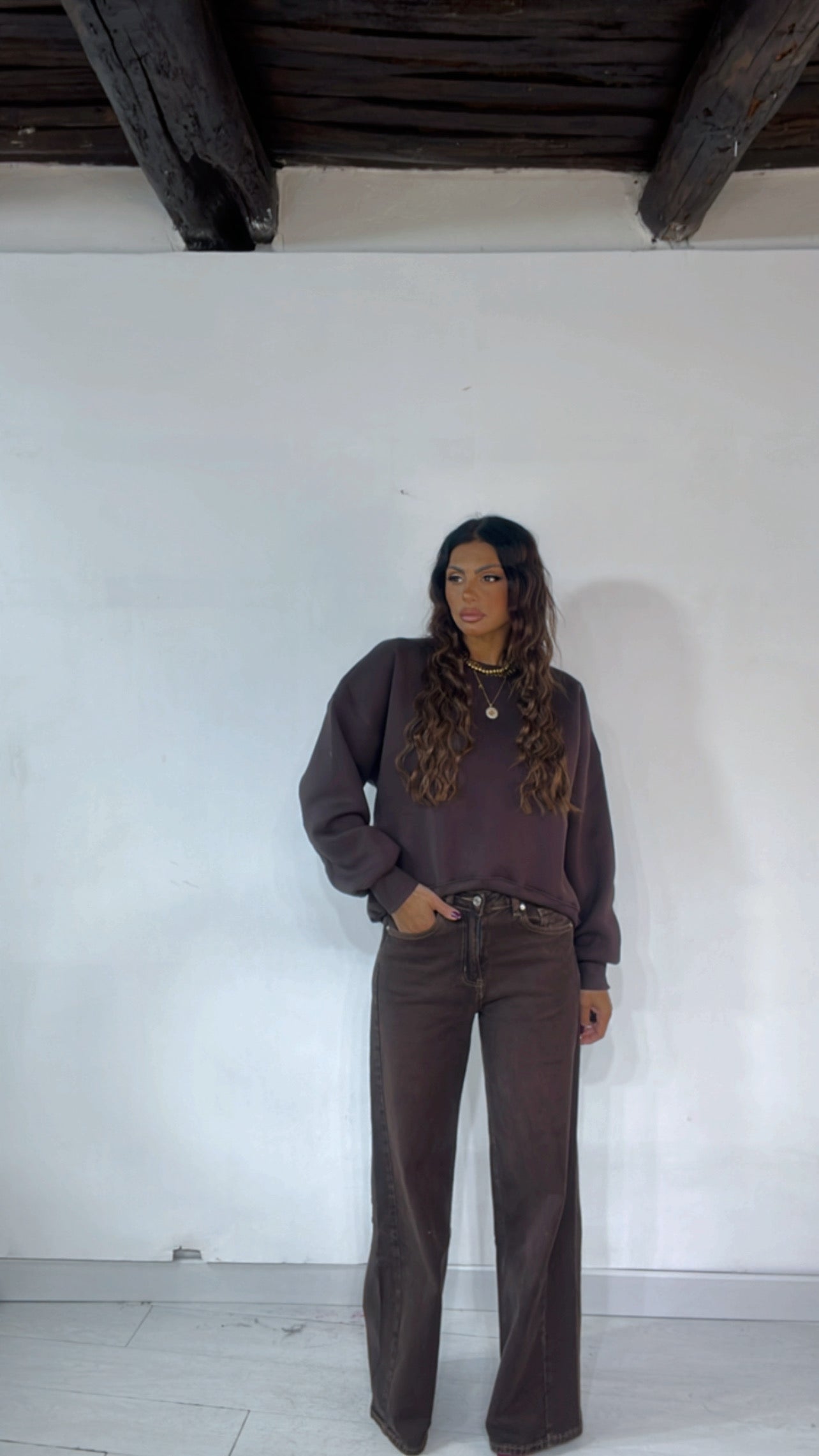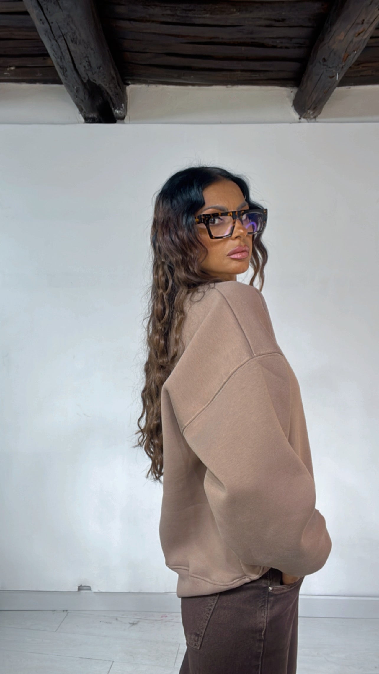 Felpa ‘Girocollo’. Leggermente più corta davanti e più lunga sul retro. Interno ‘Felpato’.