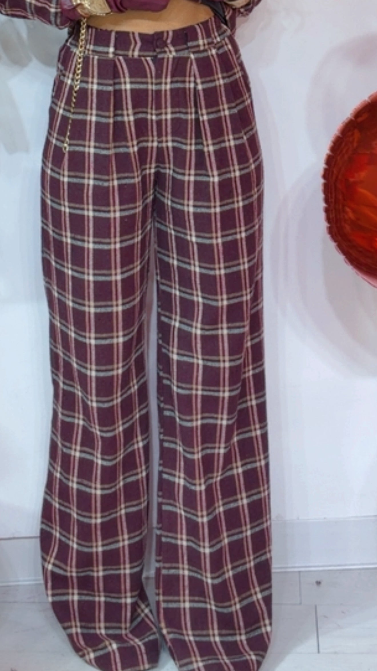 Tailleur in ‘Tessuto Flanella’ composto da: Giacca con ‘Spalline e Pettine’. Modello MonoPetto con ‘Bottone Ricoperto’, ‘Avvitata’. Pantalone vita alta, con ‘Elastico’ sul retro. Modello a ‘Palazzo’.