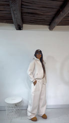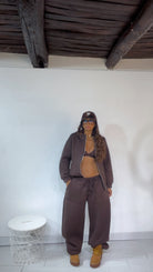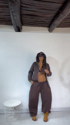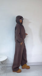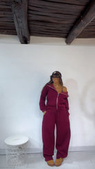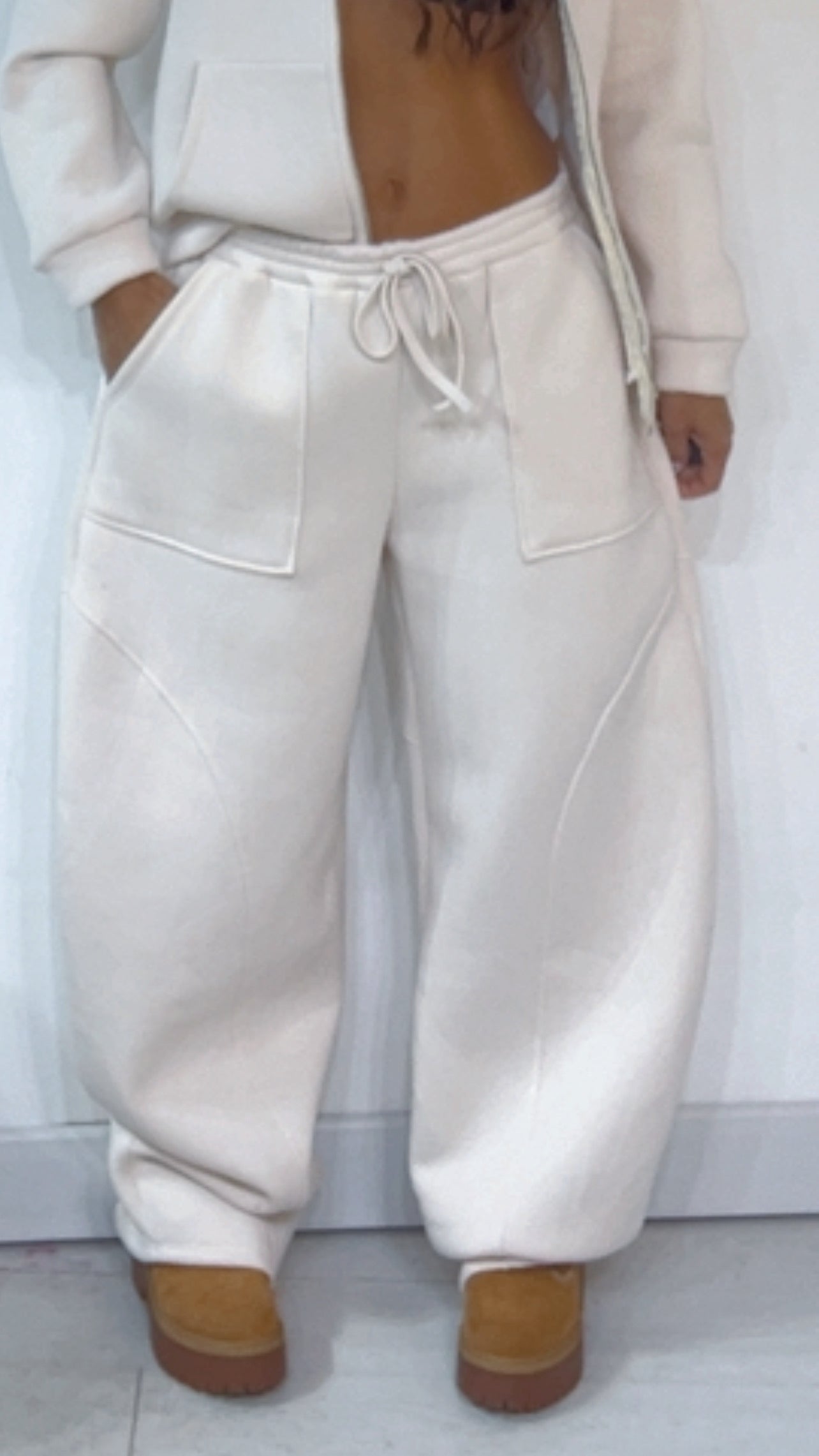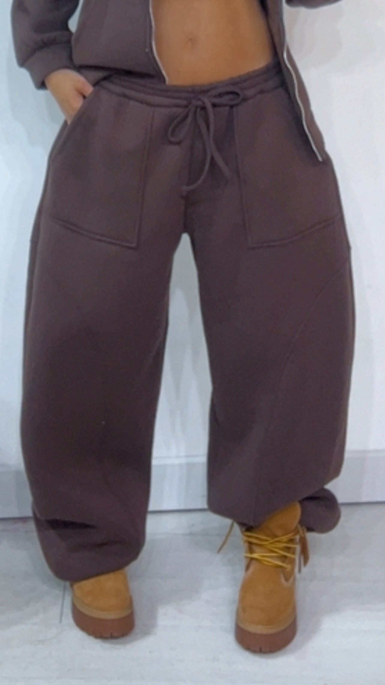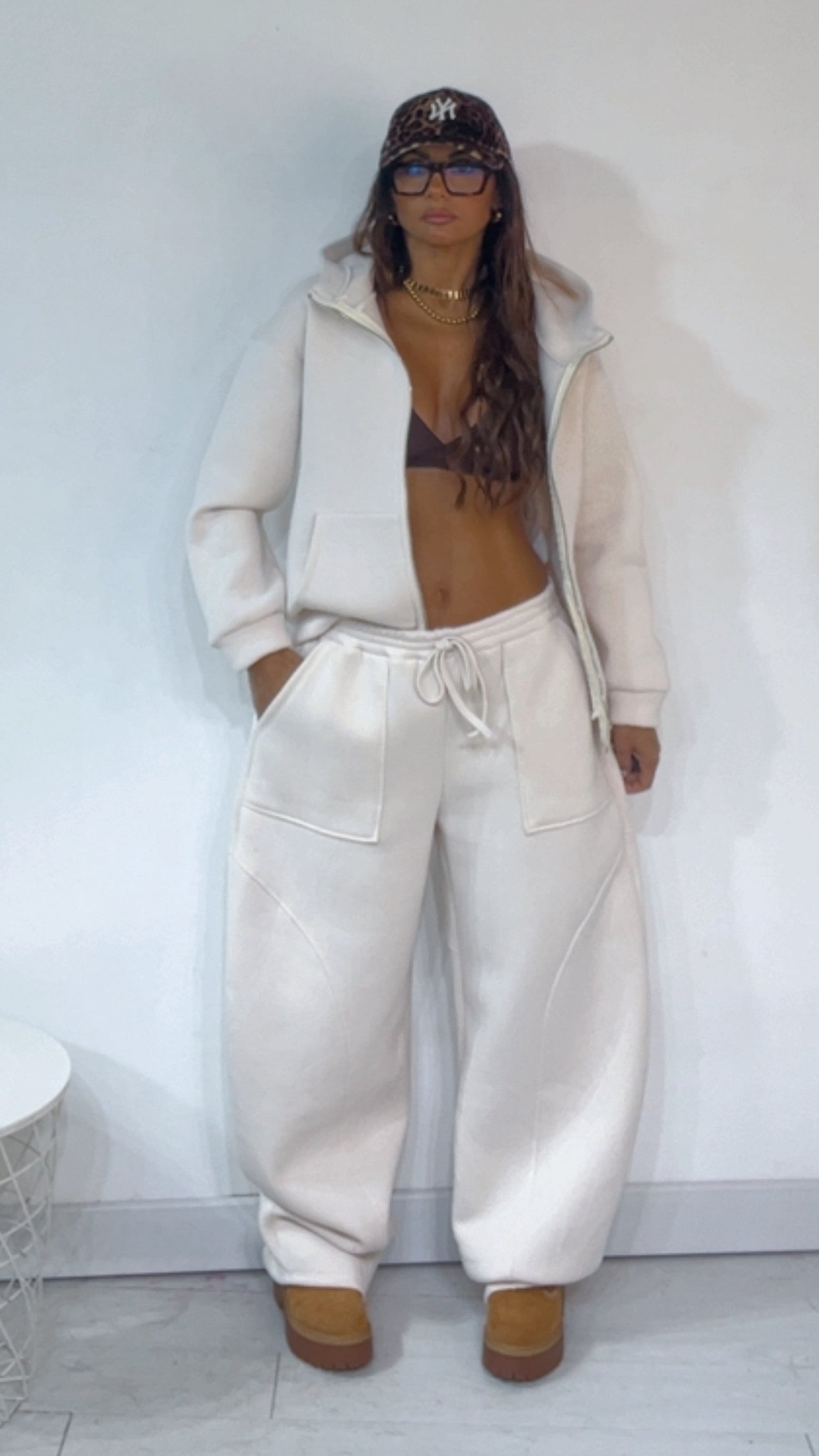 Tuta interno ‘Felpato’. Modello ‘Over’ composto da: Felpa con ‘Cappuccio e Zip’. Pantalone con ‘Elastico e Laccetti’. Modello ‘Baggy’.