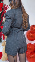 Giacca con applicazione di ‘Strass’, con ‘Spalline’ a ‘Punta’, ‘Fiocco’ sul retro regolabile. Modello DoppioPetto, Avvitata.