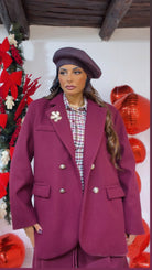 Giacca con ‘Spille Removibili’, con ‘Spalline e Pettine’. Modello ‘Cappottino’, ‘DoppioPetto’ bottoni ‘Gold’, ‘Over’.