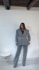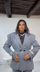 Giacca in tessuto 'cappotto',con spalline 'OverSize',effetto a 'punta' e abbottonatura doppio petto.