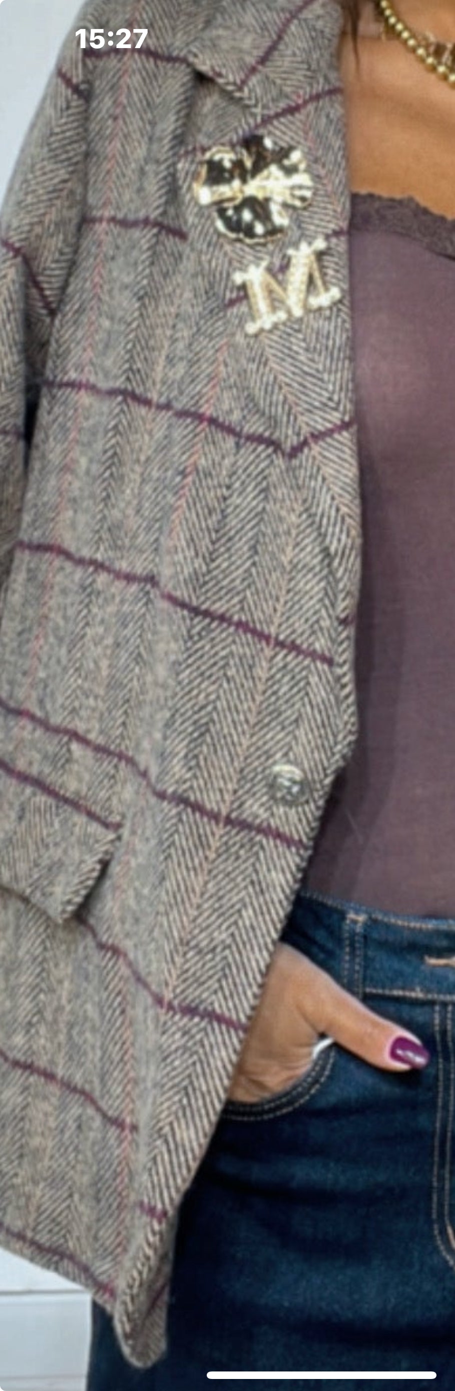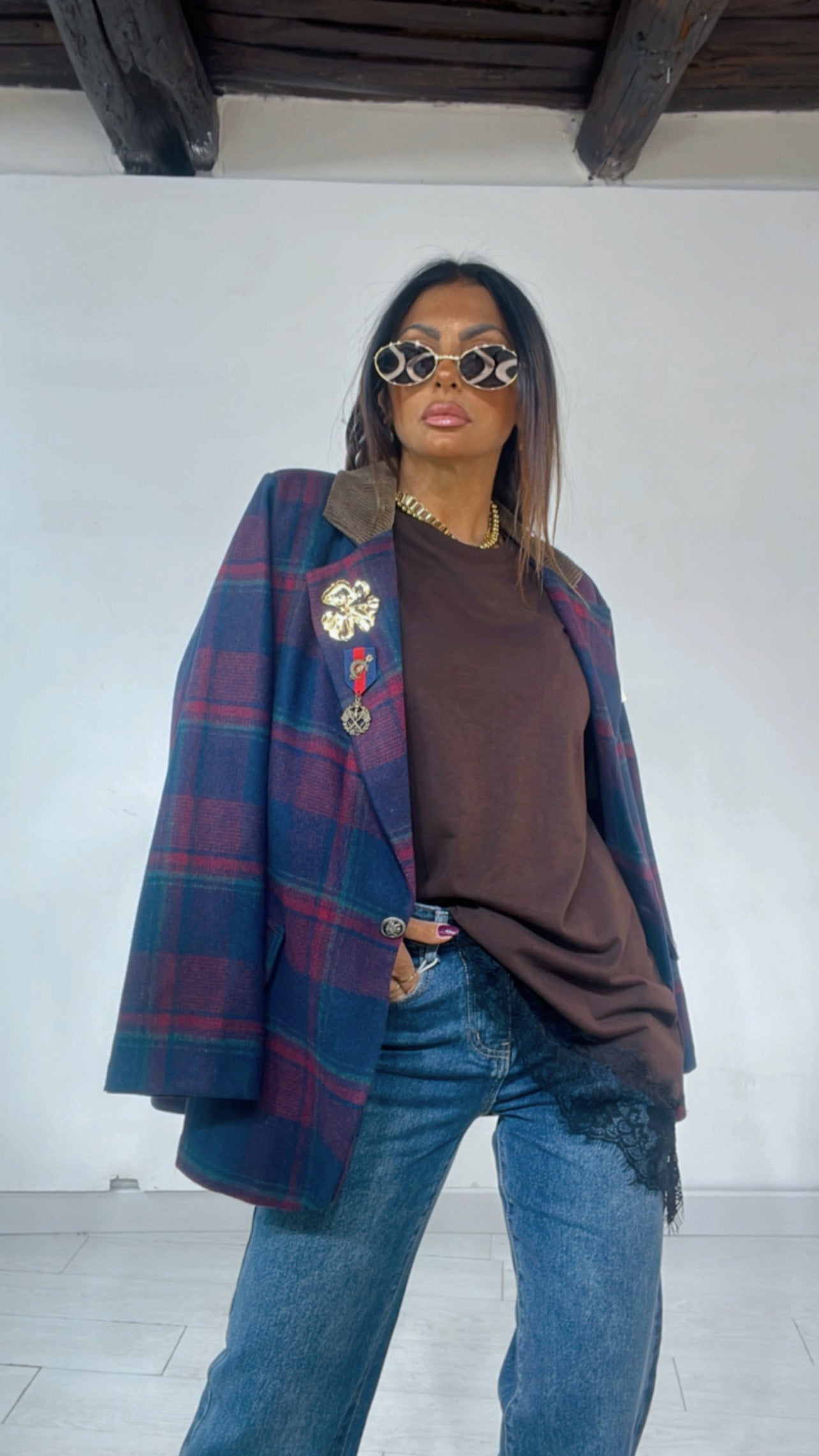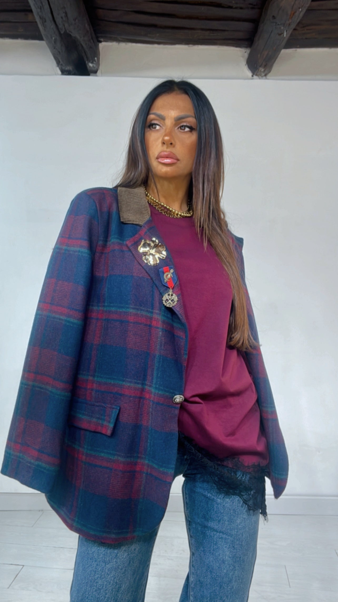 Giacca con ‘Spalline’ e ‘Pettine’, colletto in velluto a contrasto, ‘Spille’ removibile. Modello MonoPetto. In ‘Panno’.