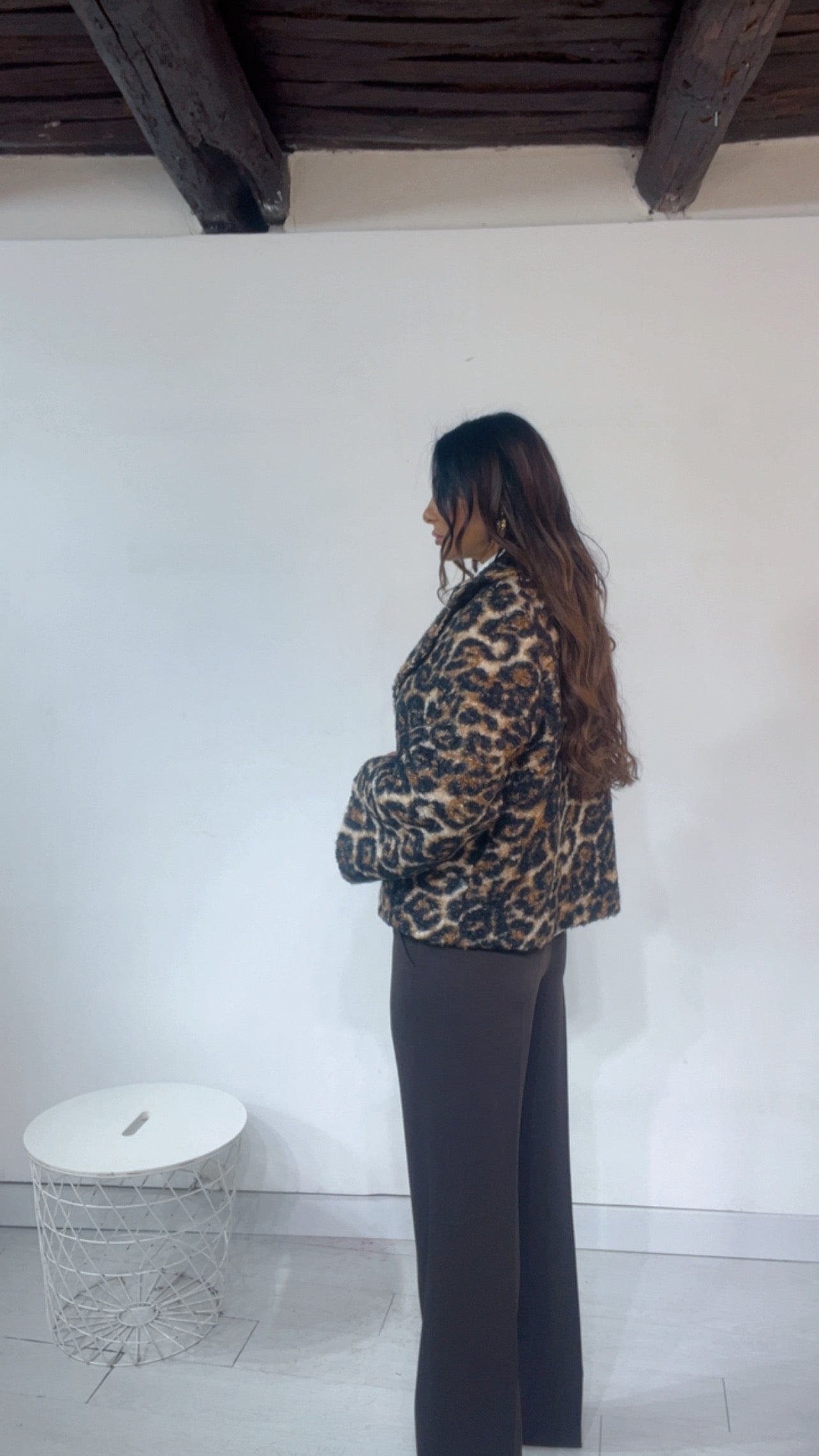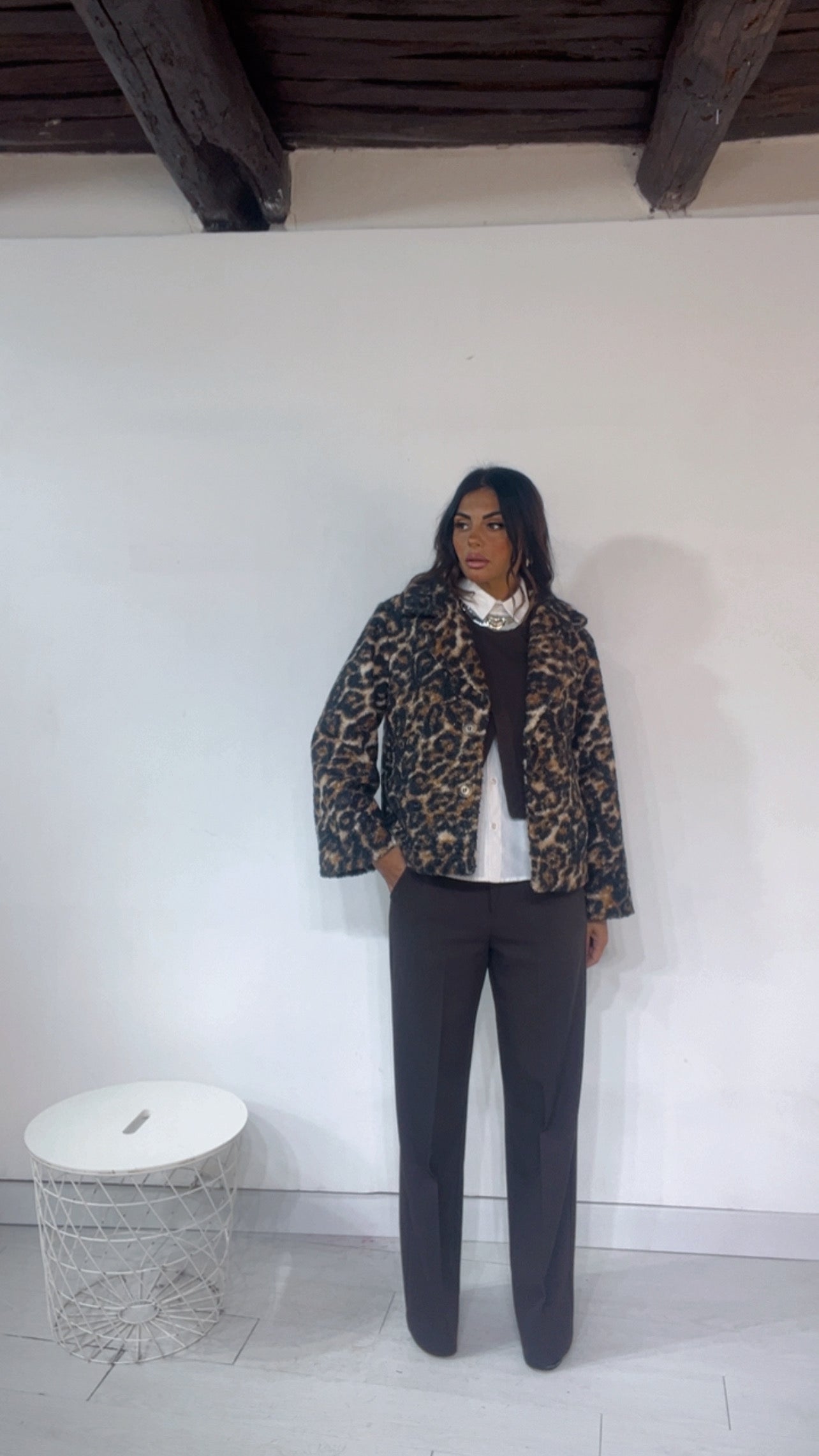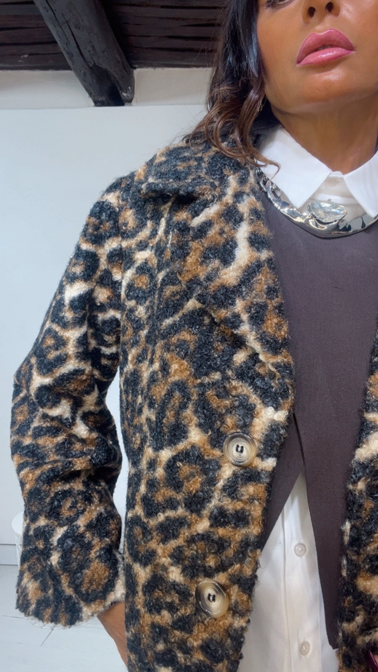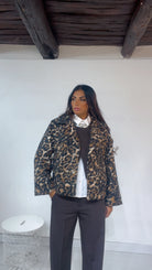 Giacca ‘Simona G’ fantasia ‘Animalier’. Modello ‘MonoPetto’, ‘Cappottino’. Leggermente ‘Ampia’.
