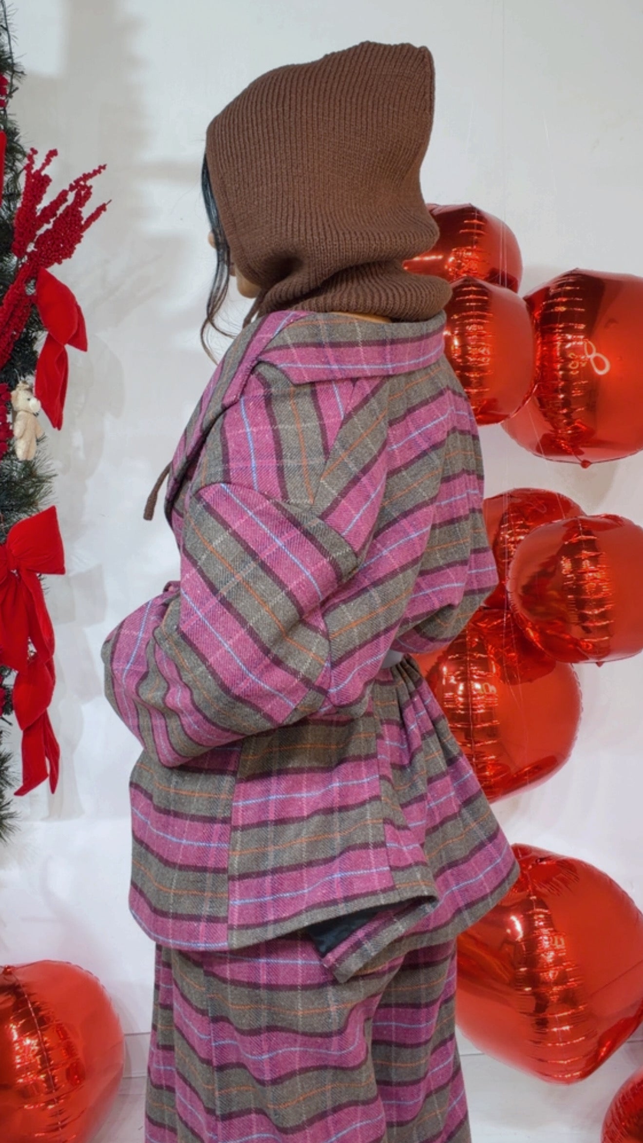 Giacca fantasia ‘Tartan’, con ‘Spalline e Pettine’. Modello ‘MonoPetto’, ‘Over’.