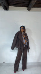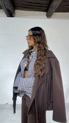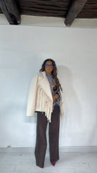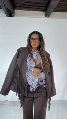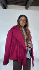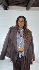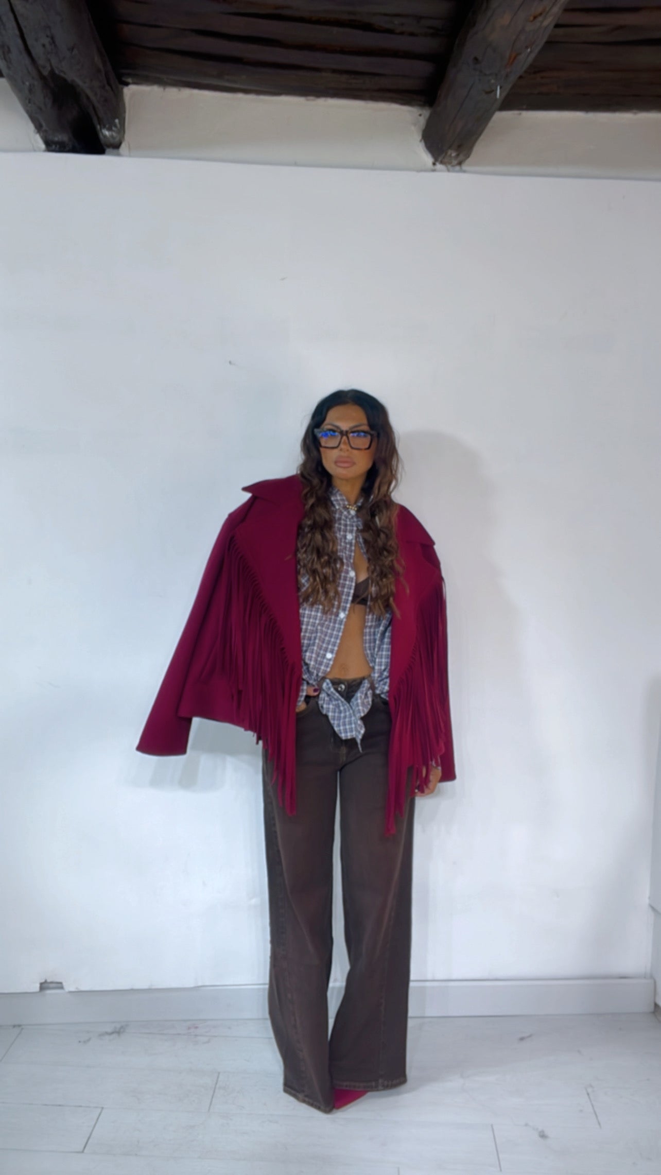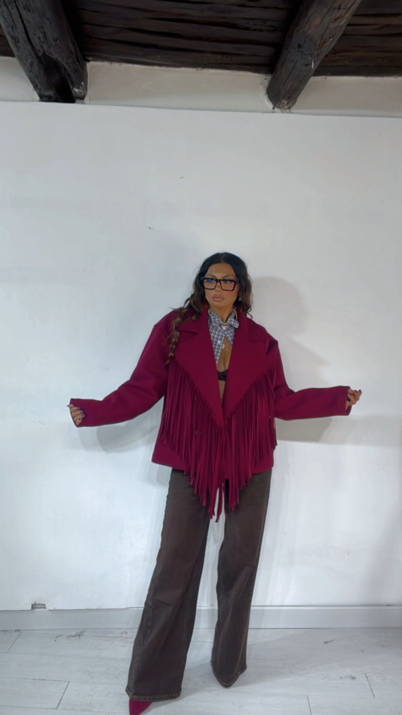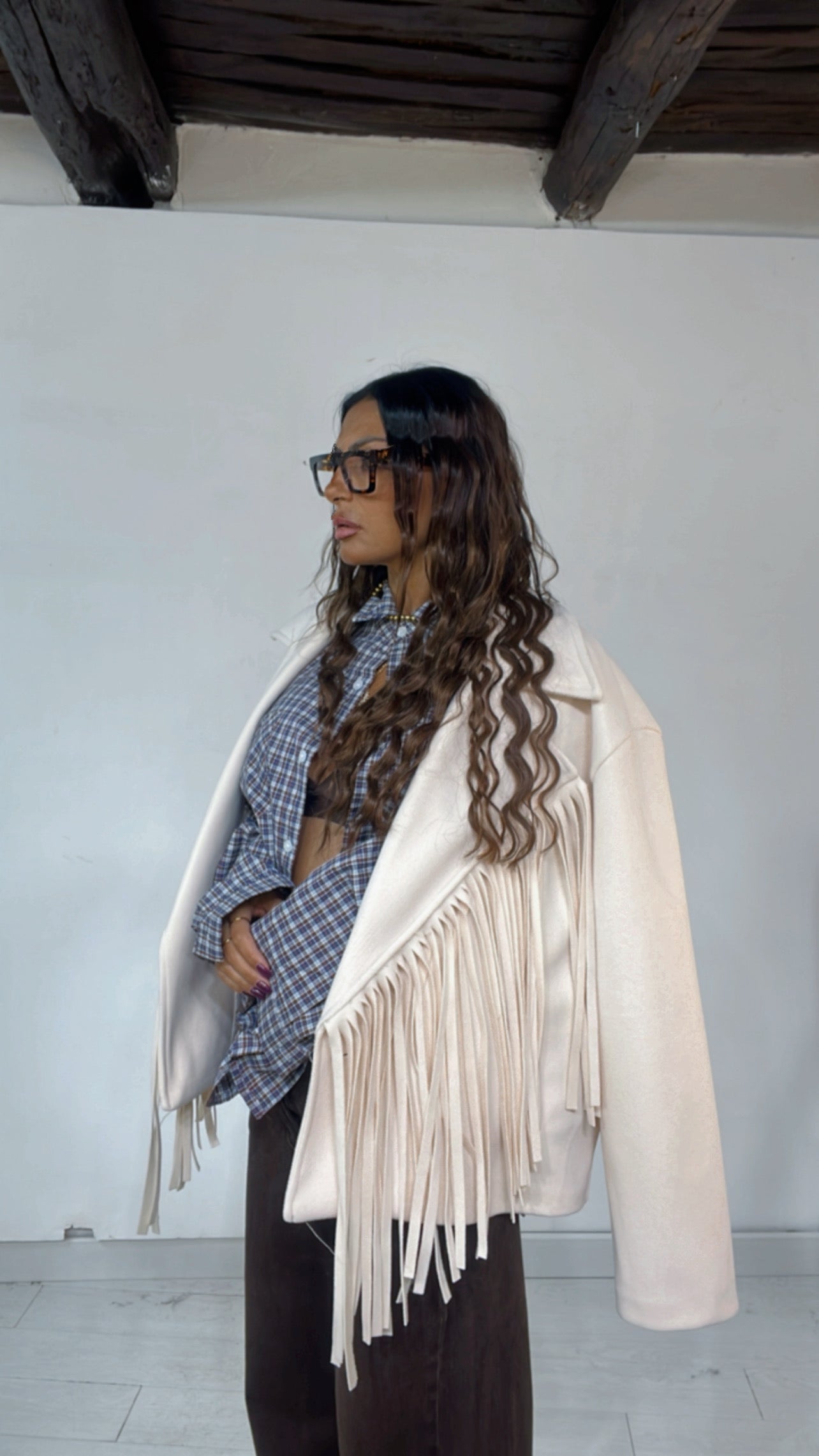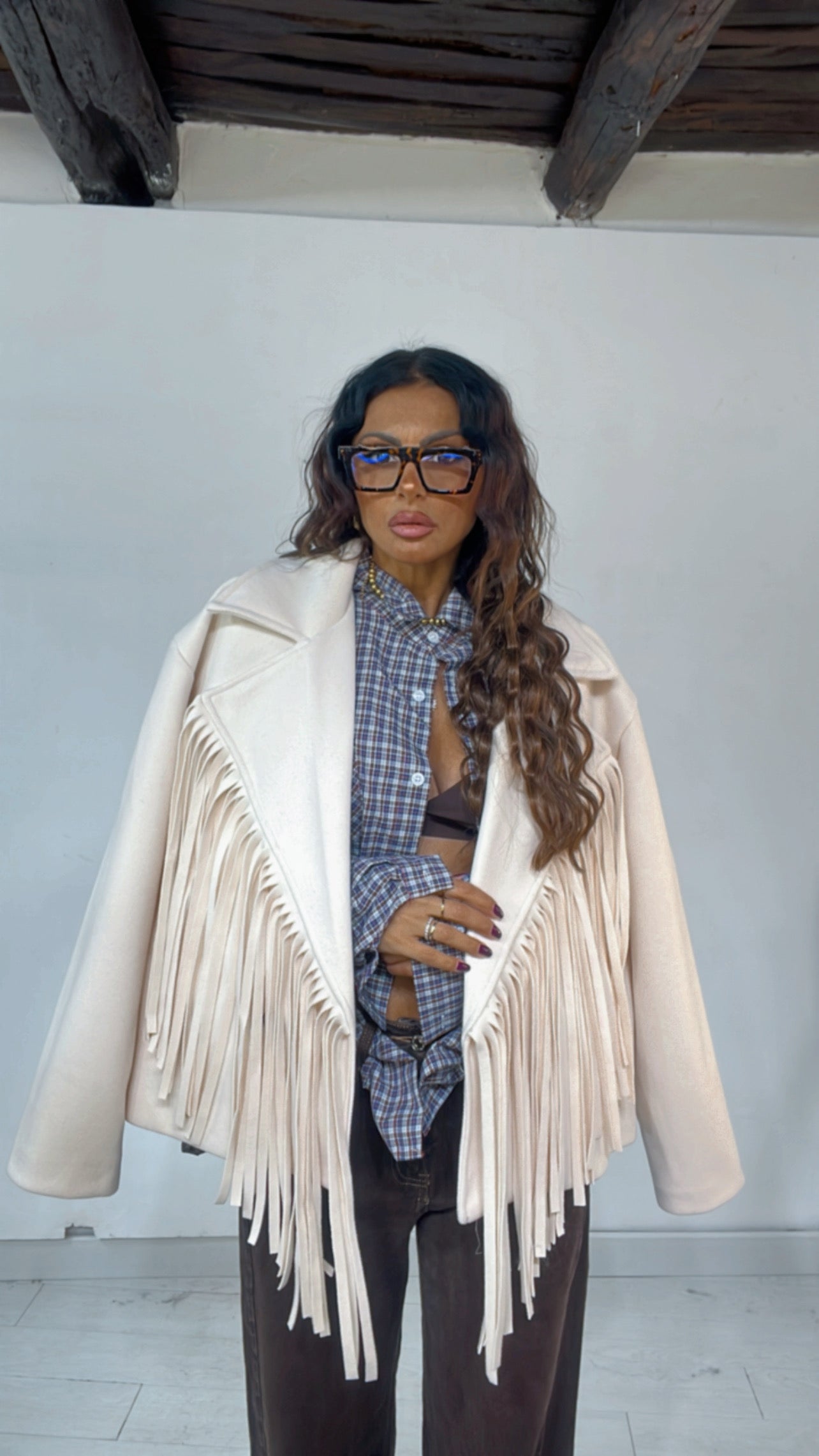 Giacca/Cappottino con applicazione di ‘Frange’. Modello Leggermente ‘Over’. Modello ‘DoppioPetto’.