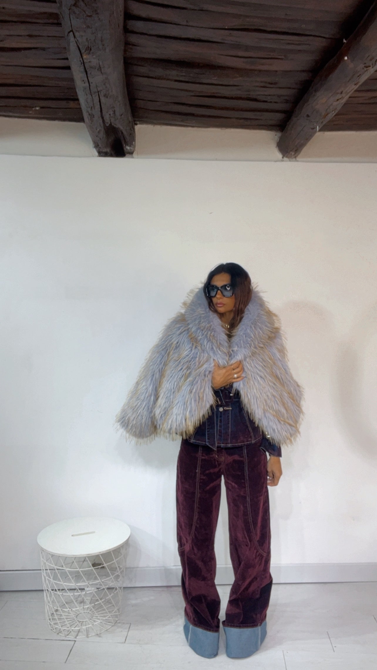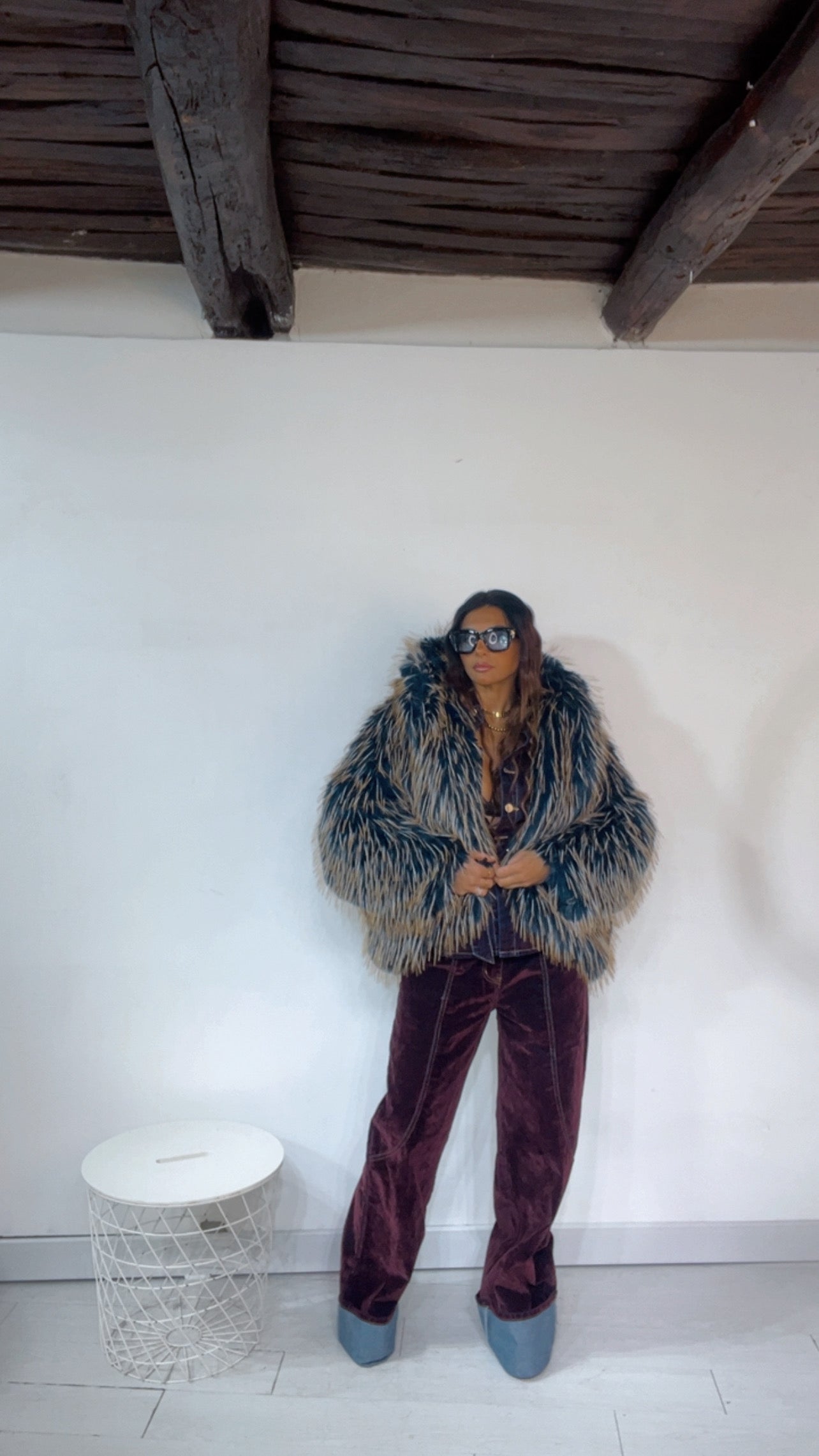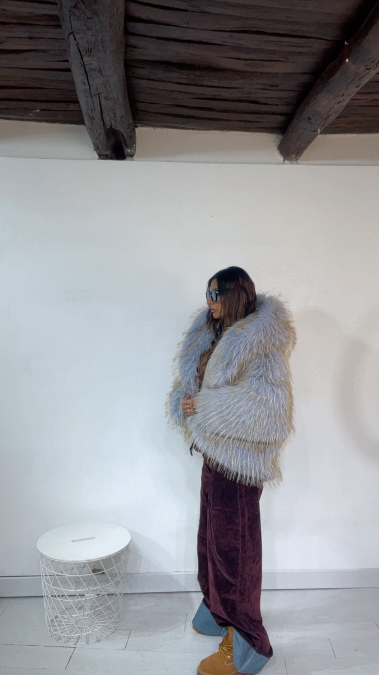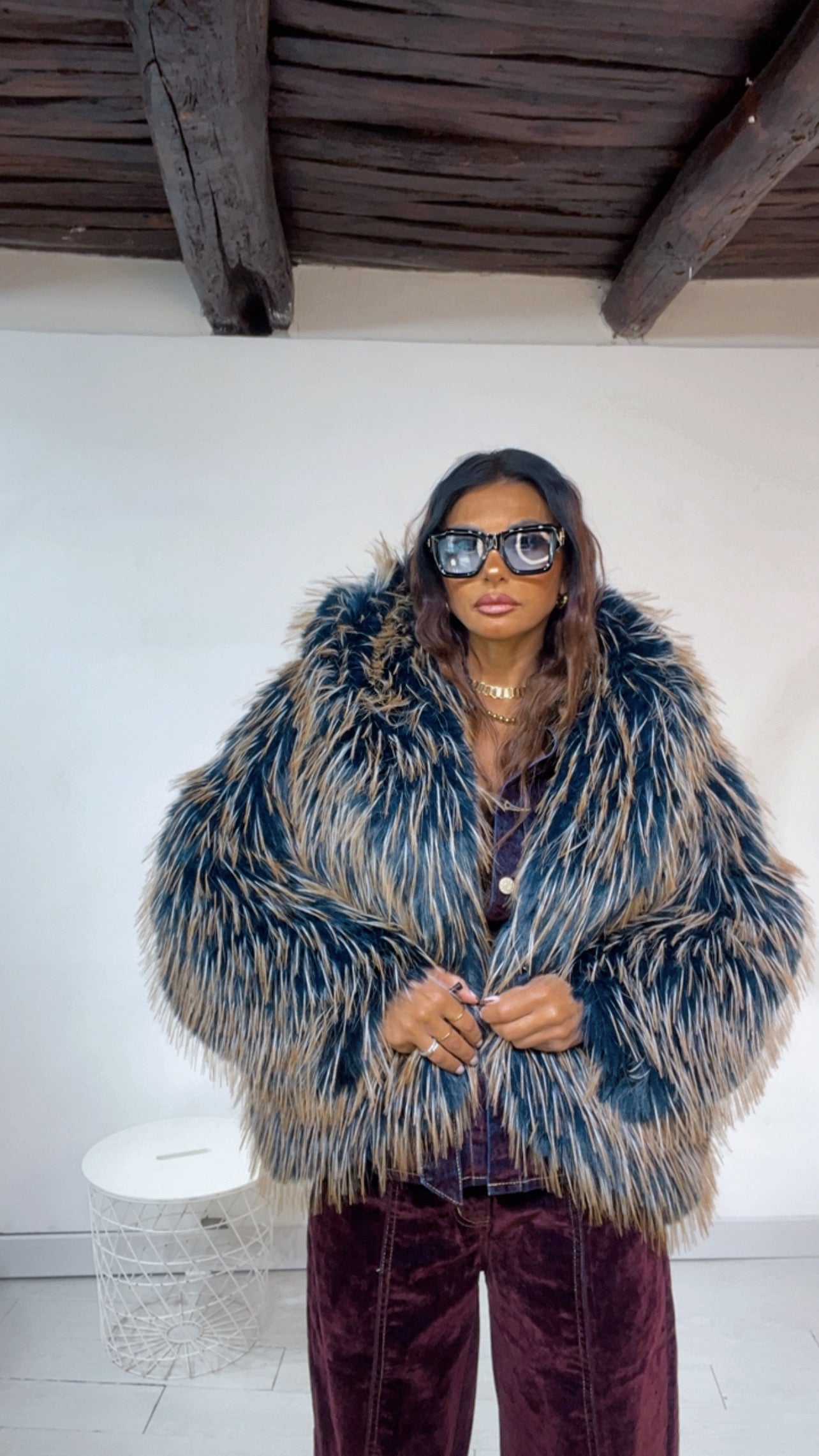 EcoPelliccia con ‘Cappuccio’, ‘Sfumature’ a contrasto, chiusura ‘Ciappetta’. Modello ‘Over’.