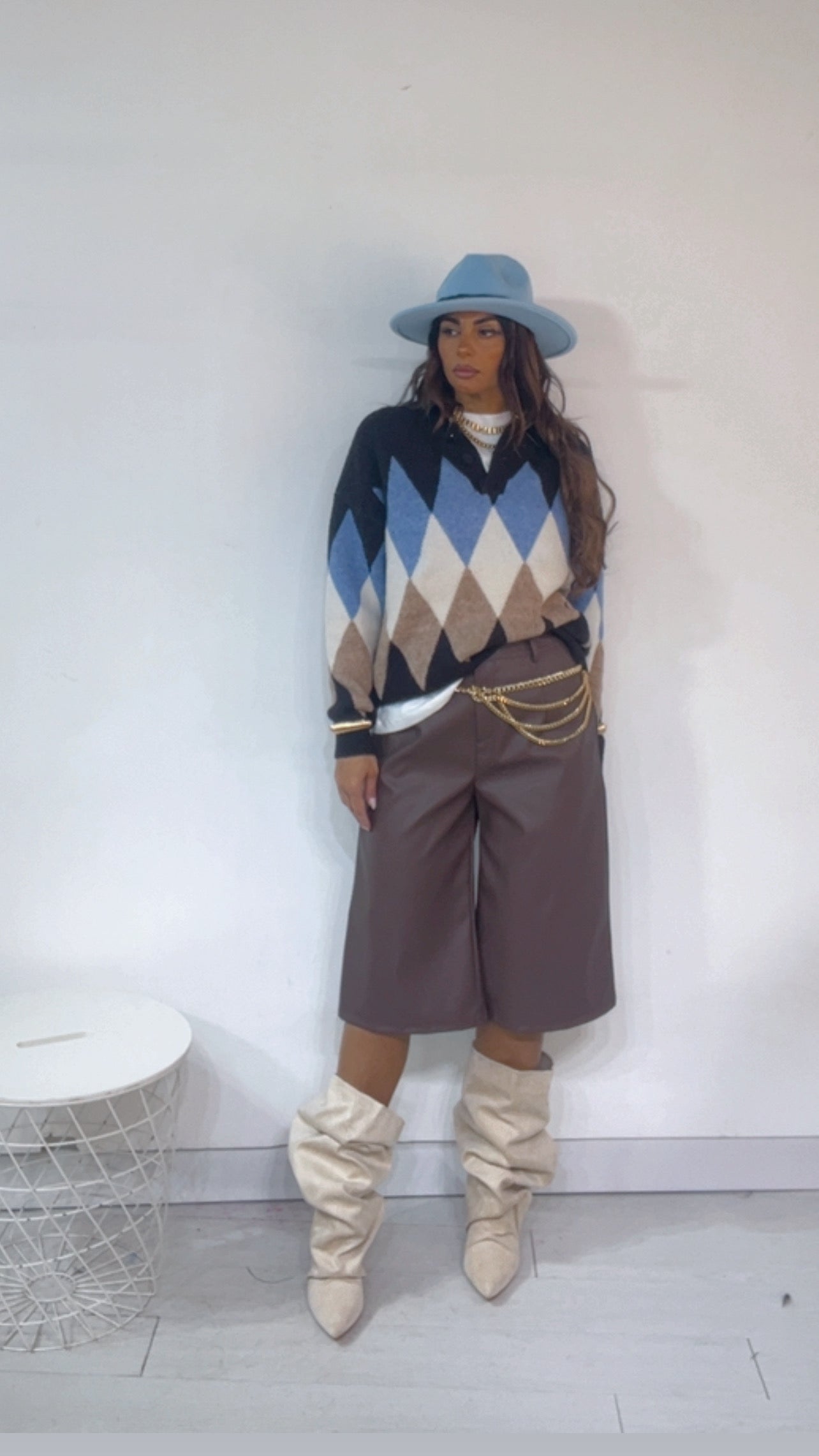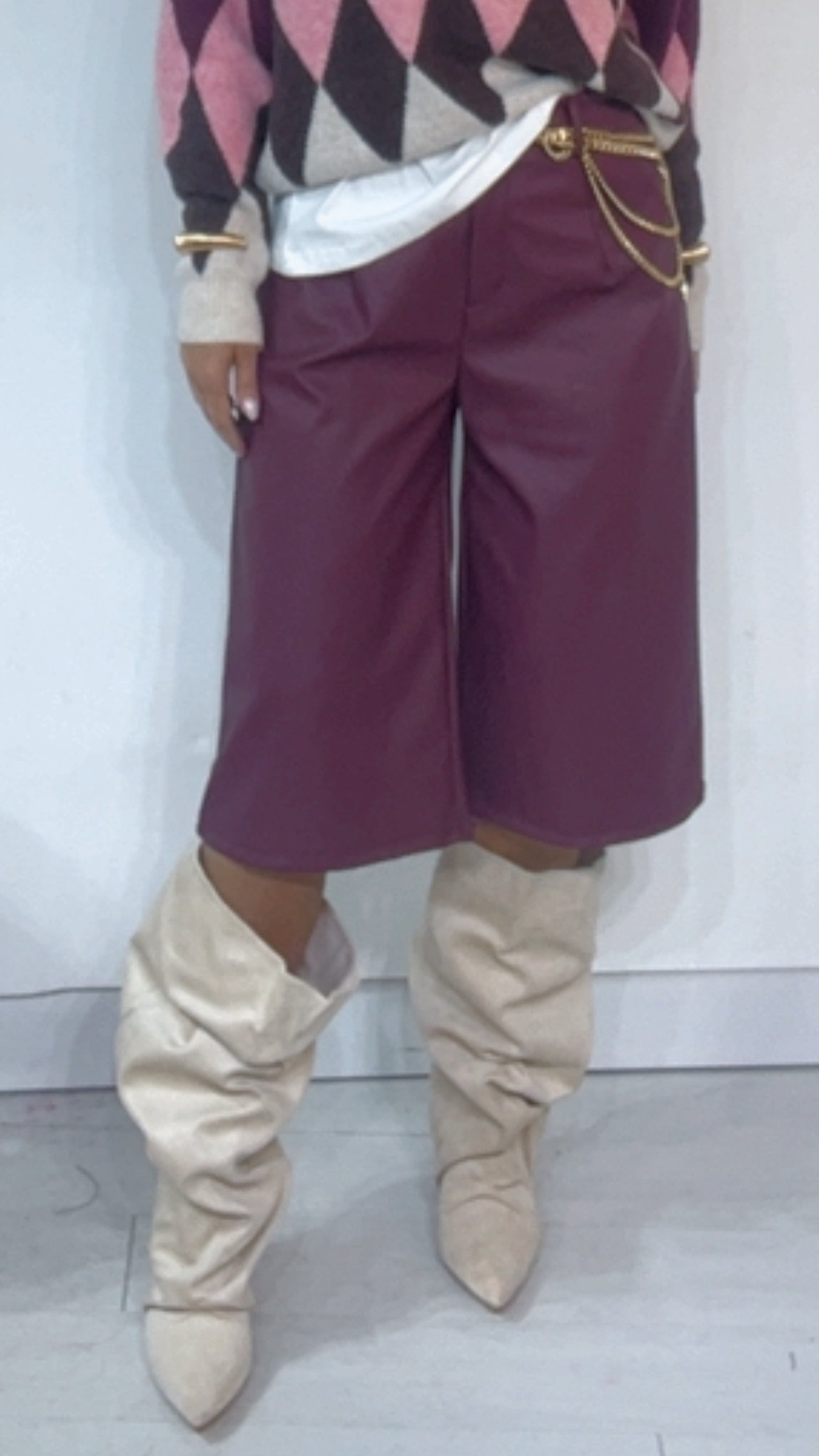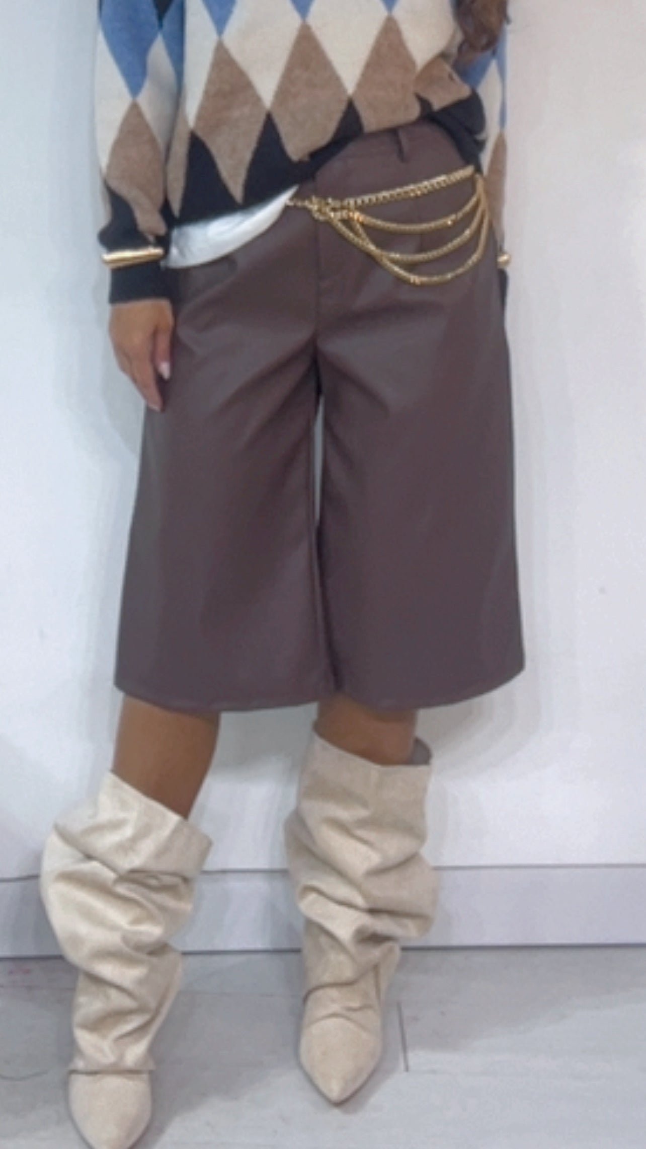 Bermuda vita alta, con ‘Elastico’ sul retro. In ‘EcoPelle’.