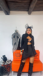 MiniGonna in tessuto satinato,con lunghezza trasversale e linea aderente.Il bordo inferiore è impreziosito da inserti in pizzo e sul fianco una fusciacca sempre in pizzo.