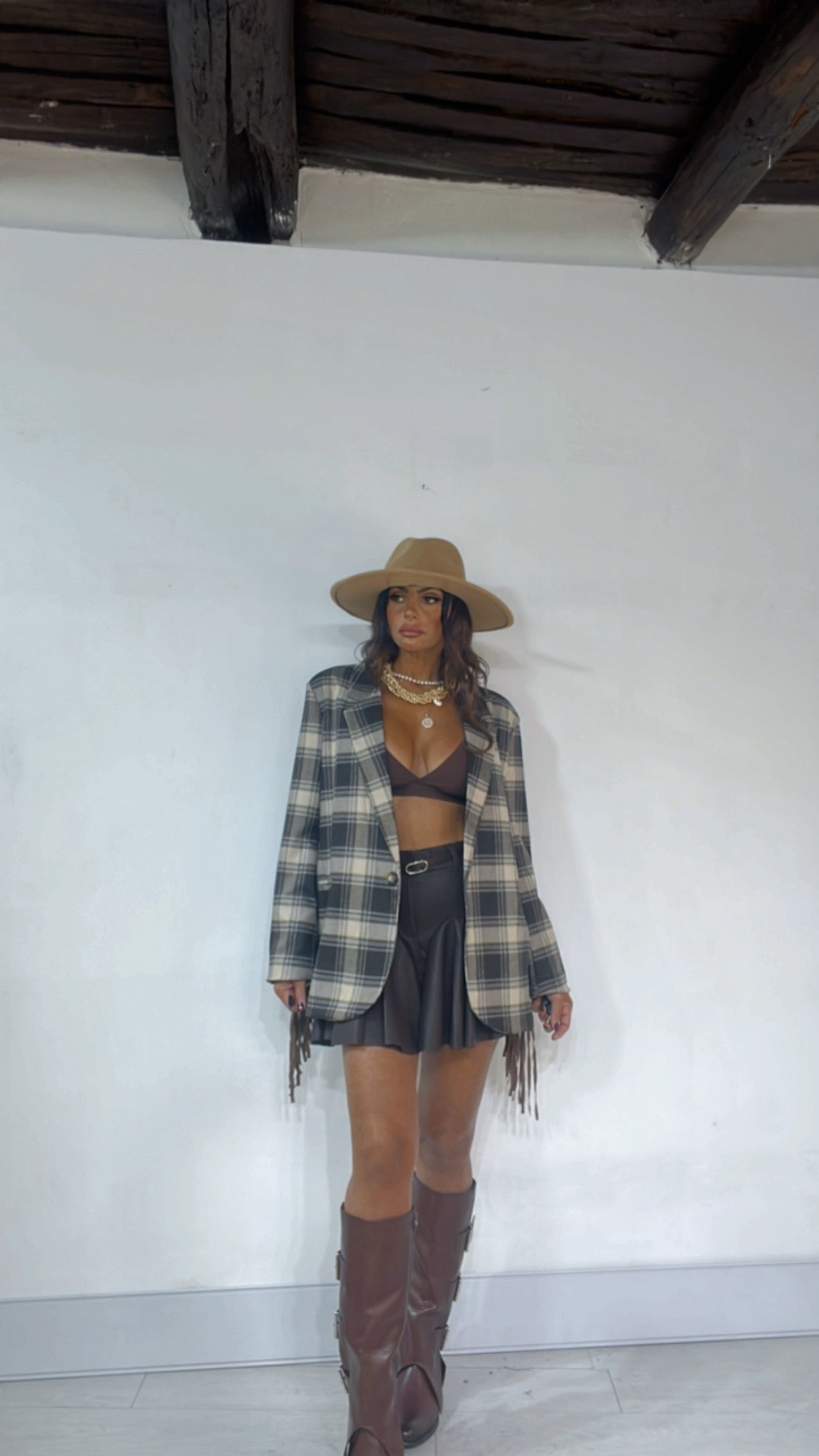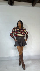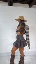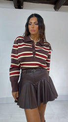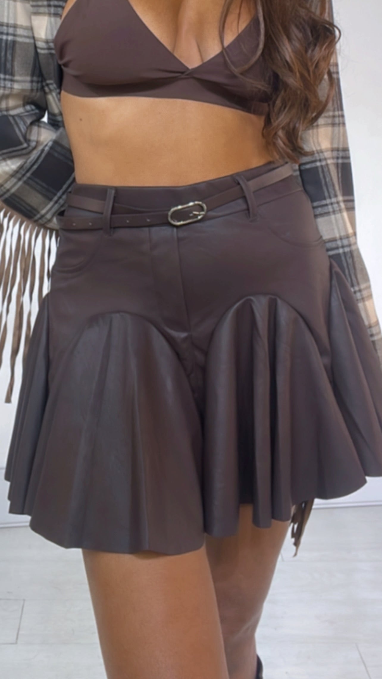 Gonnellina vita alta, ‘Cintura Compresa’. Shorts Incorporati. In ‘EcoPelle’.