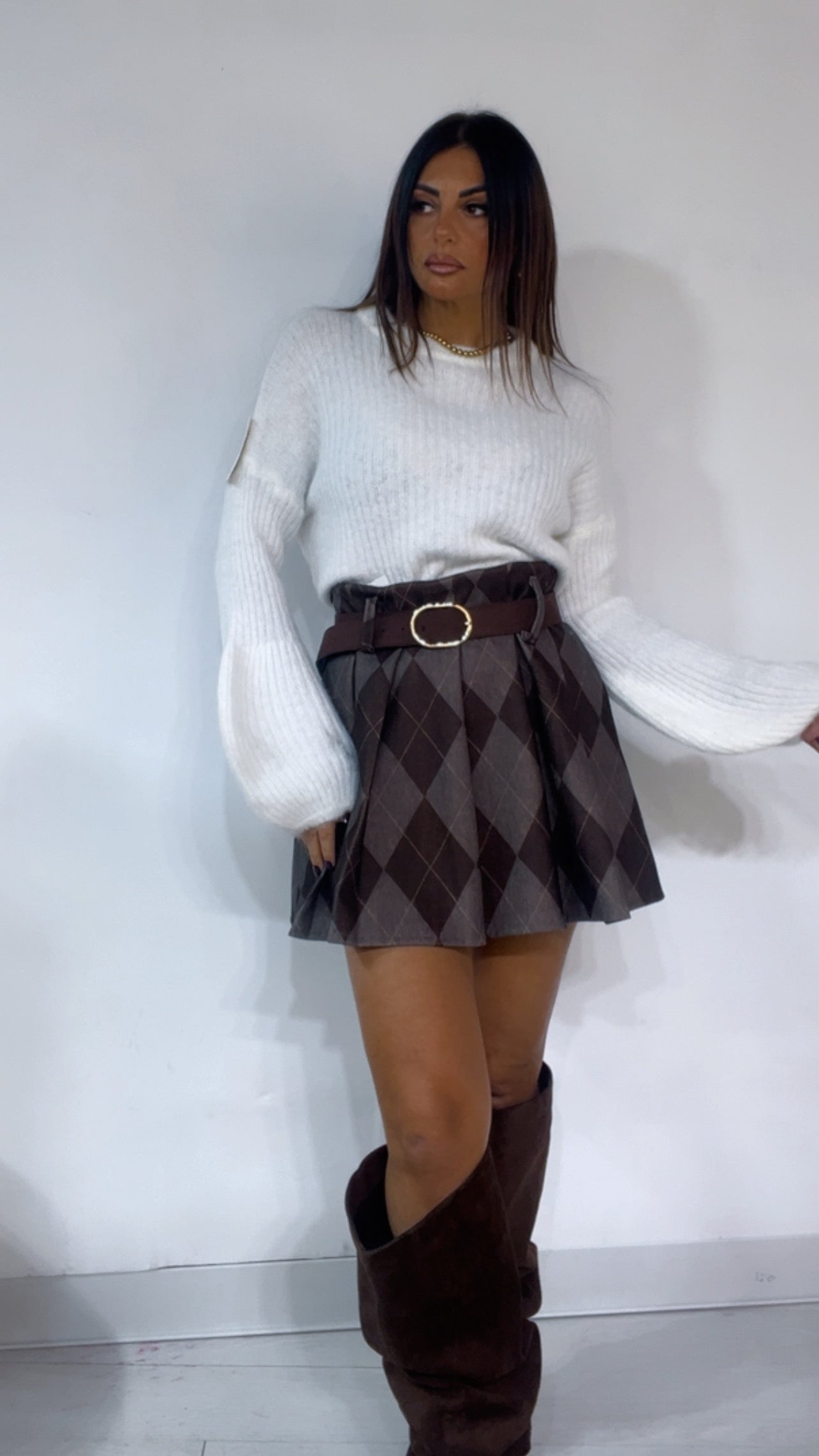 Gonnellina in tessuto 'cappottino',modello 'tennis' ,vita alta.E' compresa di cintura tessuto 'suede'.