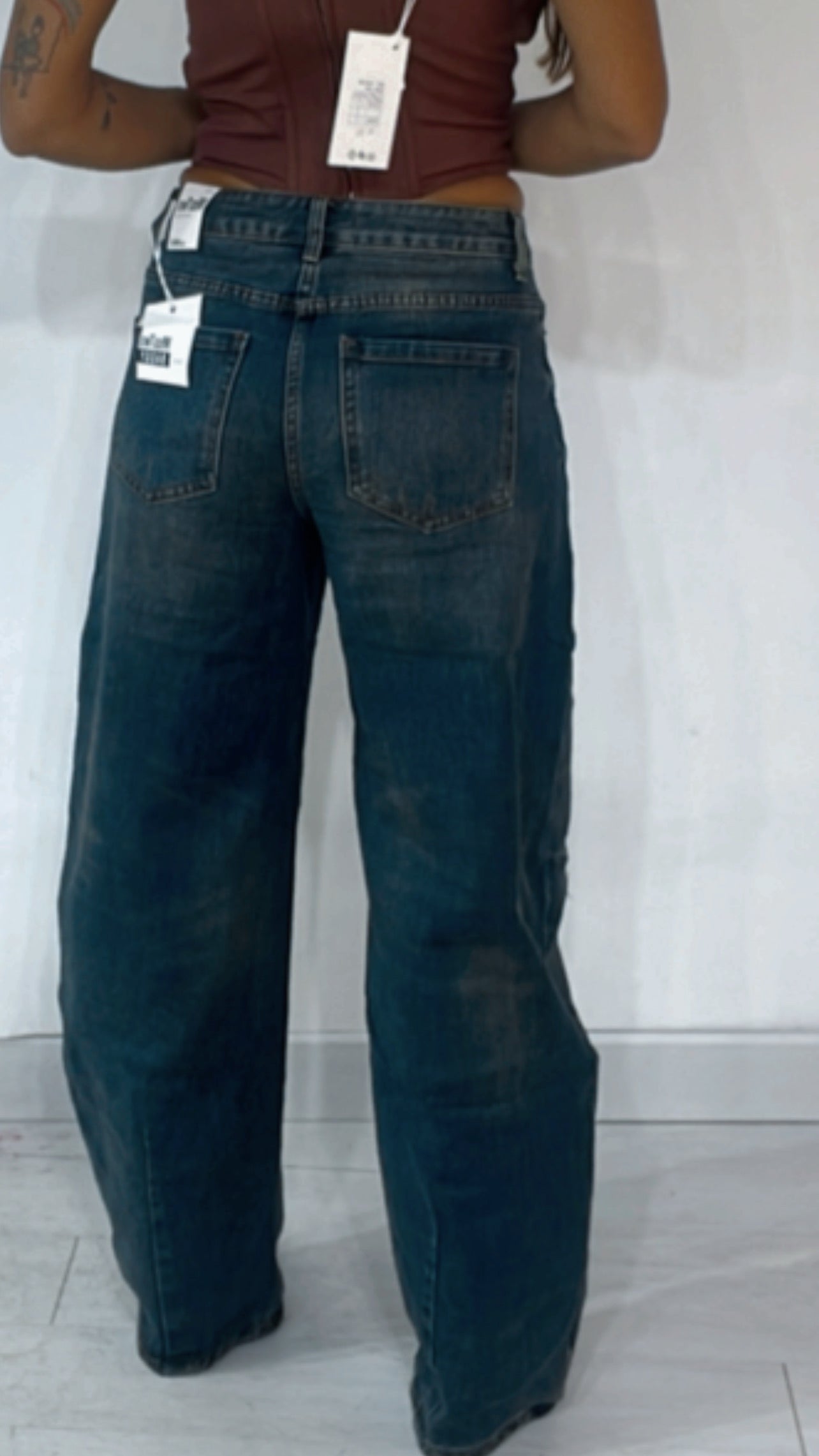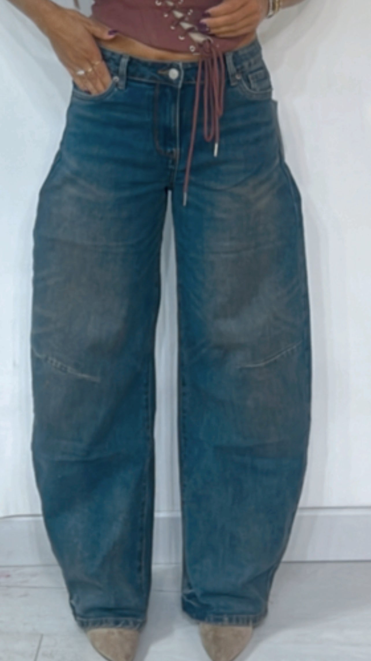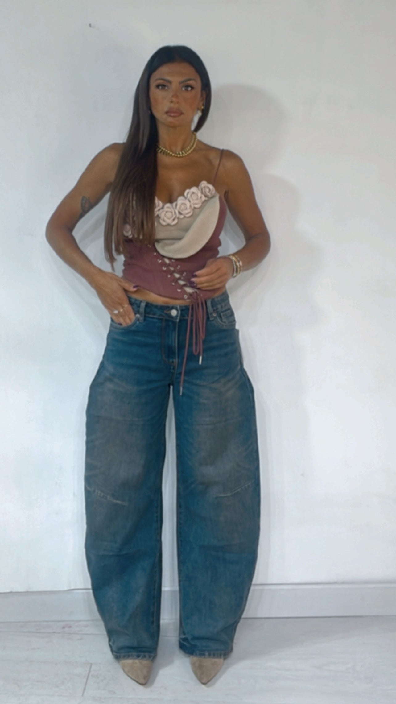 La modella indossa una taglia M per avere un effetto vita bassa.