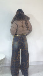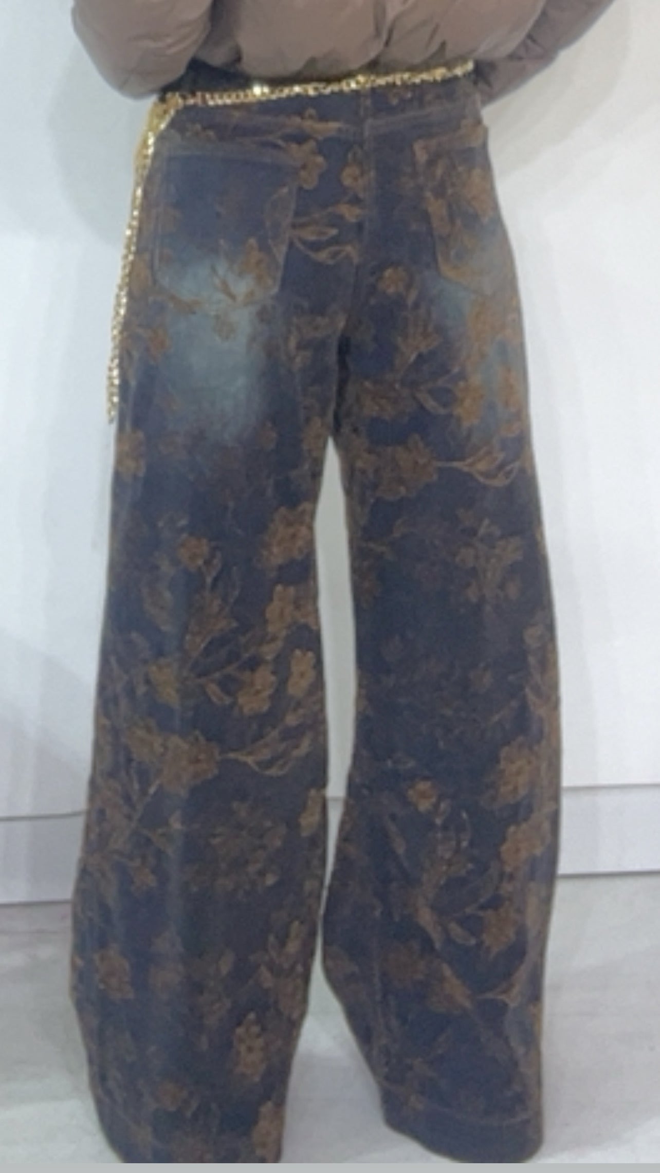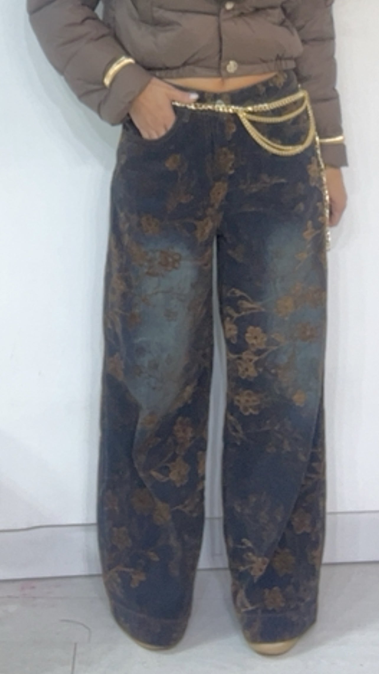 Jeans vita ‘Media’, con applicazione di ‘Fiori in Velluto’. Modello ‘Wide Leg’.