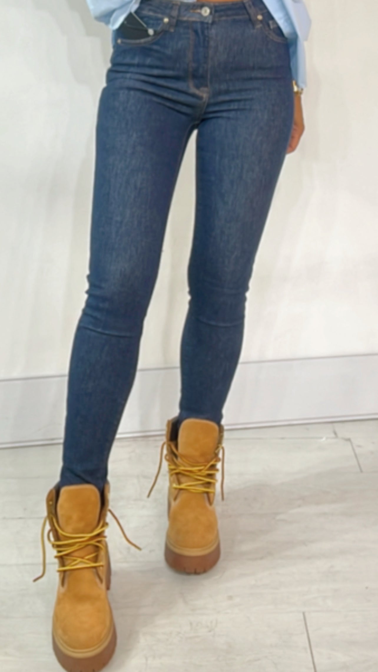 Jeans vita alta. Modello ‘Push-Up’, ‘Skinny’. Trama ‘Elastica’.