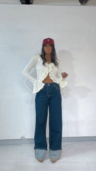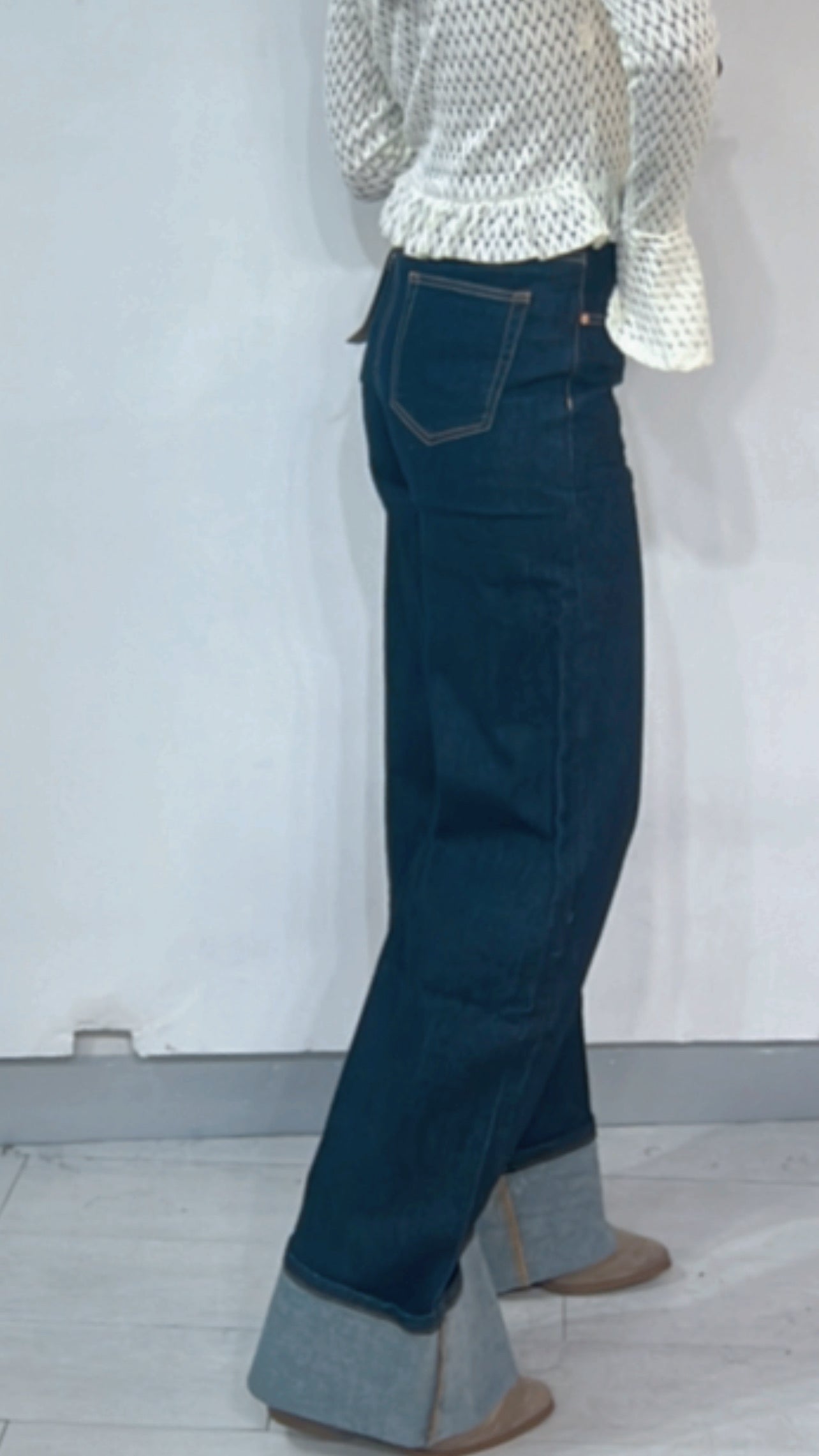 Jeans vita alta, con ‘Piegone’. Trama ‘Elastica’.