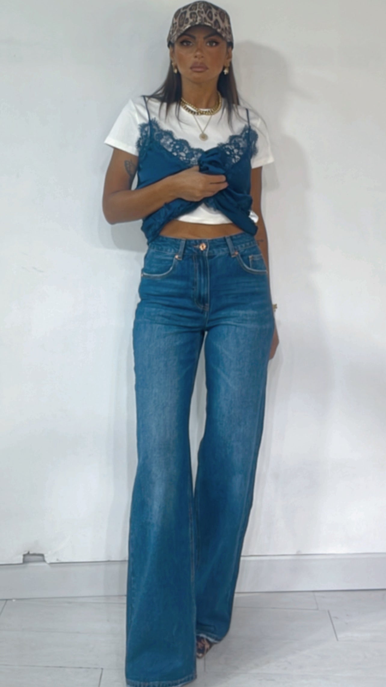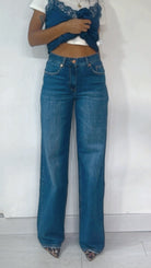 Jeans vita alta. Modello Wide Leg. Trama non ‘Elastica’ ma ‘Morbida’.
