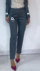 Pantalone ‘Simona G’ vita alta, elastico sul retro. Modello a ‘Sigaretta’, alla ‘Caviglia’, con ‘Spacchetti Laterali’.