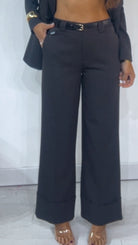 Pantalone ‘Simona G’ vita alta, ‘Cintura Compresa’, con ‘Tasche’ e ‘Piegone’. Modello 7/8.