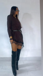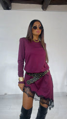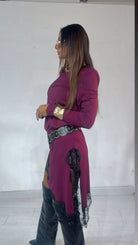 Abito ‘LUMINA’ con ‘Spalline’. ‘Asimmetrico’. In ‘Cotone’ con ‘Inserti’ in ‘Pizzo’.