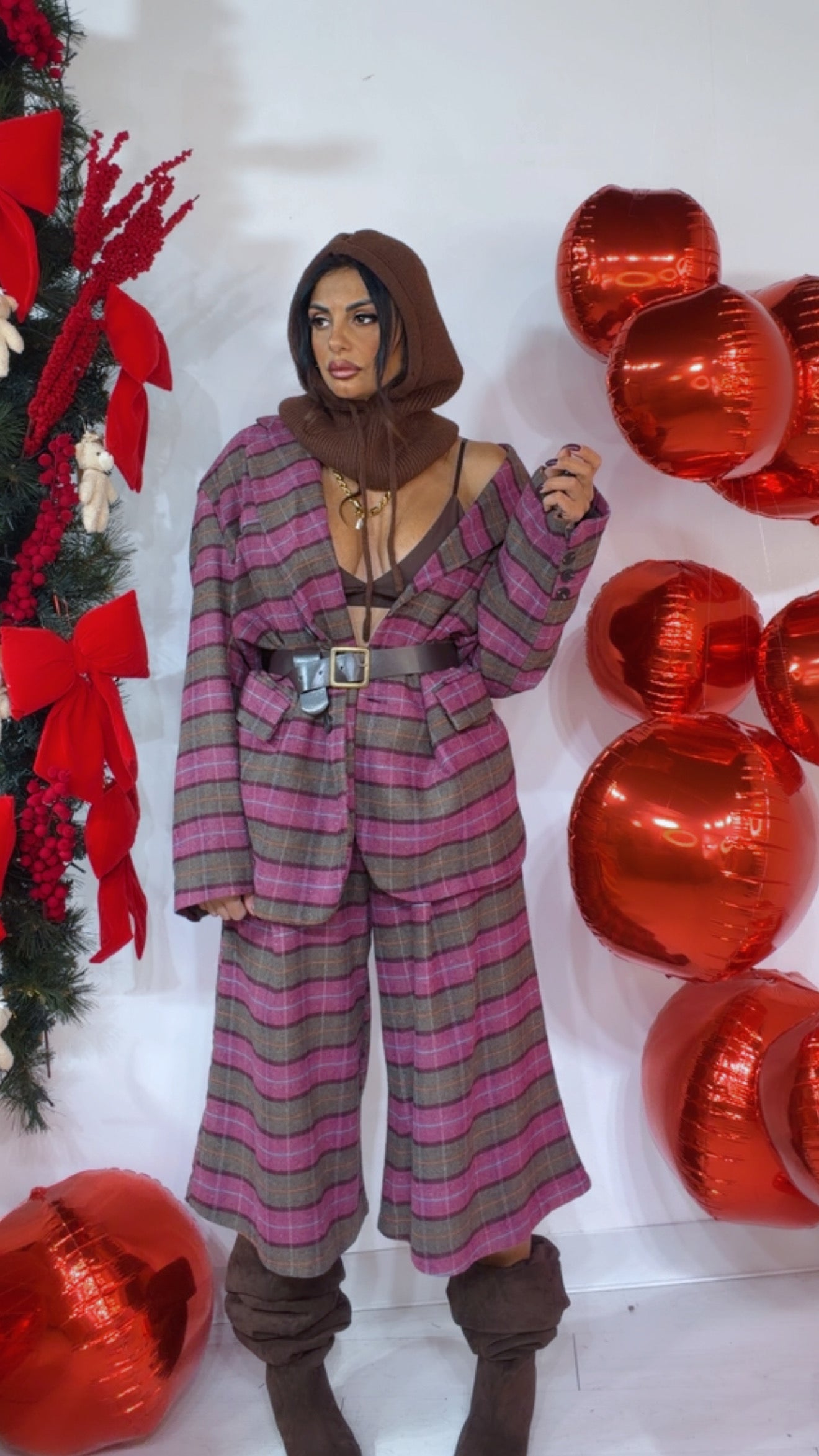 Bermuda fantasia ‘Tartan’, vita alta, ‘Cintura’ compresa, ‘Elastico’ sul retro. Modello ‘Over’.