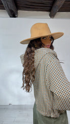 Bomber fantasia ‘Quadri’, con ‘Cappuccio’, ‘Elastico’ ai polsi, fondo con ‘Coulisse’. In ‘Cotone’. Interno Completamente ‘Imbottito’.
