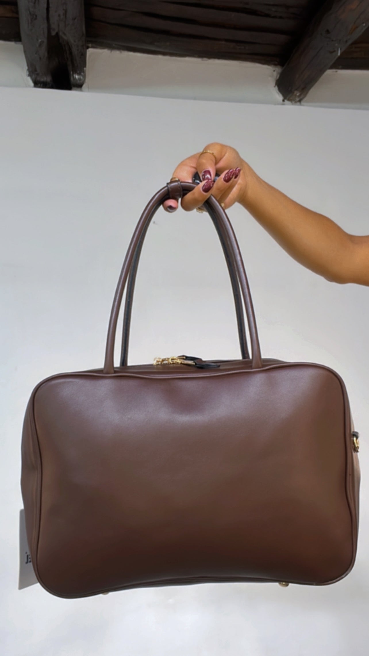 Borsa a mano in ‘SemiPelle’ Liscia, Dotata di ‘Doppio Manico’, chiusura superiore con zip e finiture metalliche ‘Dorate’.