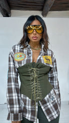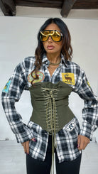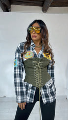 Bustino non presenta ‘Coppe’, ‘Laccetti’ regolabili davanti e sul retro. In ‘Tessuto Elastico’.