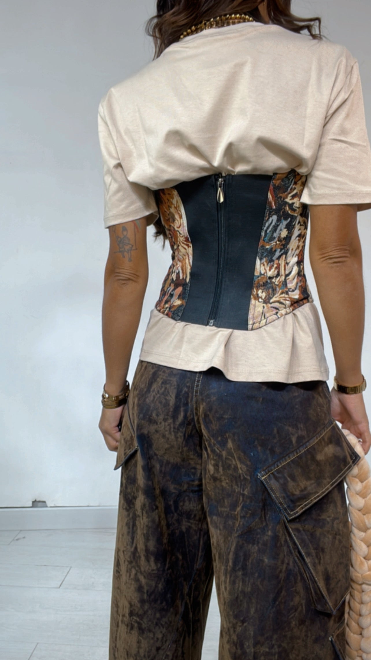 Bustino fantasia ‘Fiorè’ con ‘Coppe Preformate’, ‘Bretelle Removibile’, chiusura ‘Zip’ sul retro. ‘Steccato’. Modello ‘Avvitato’.