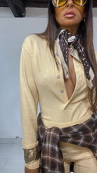 Coord Set in ‘Lanetta Leggera’ composto da: Body chiusura ‘Bottoncini’. Shorts vita alta con elastico.