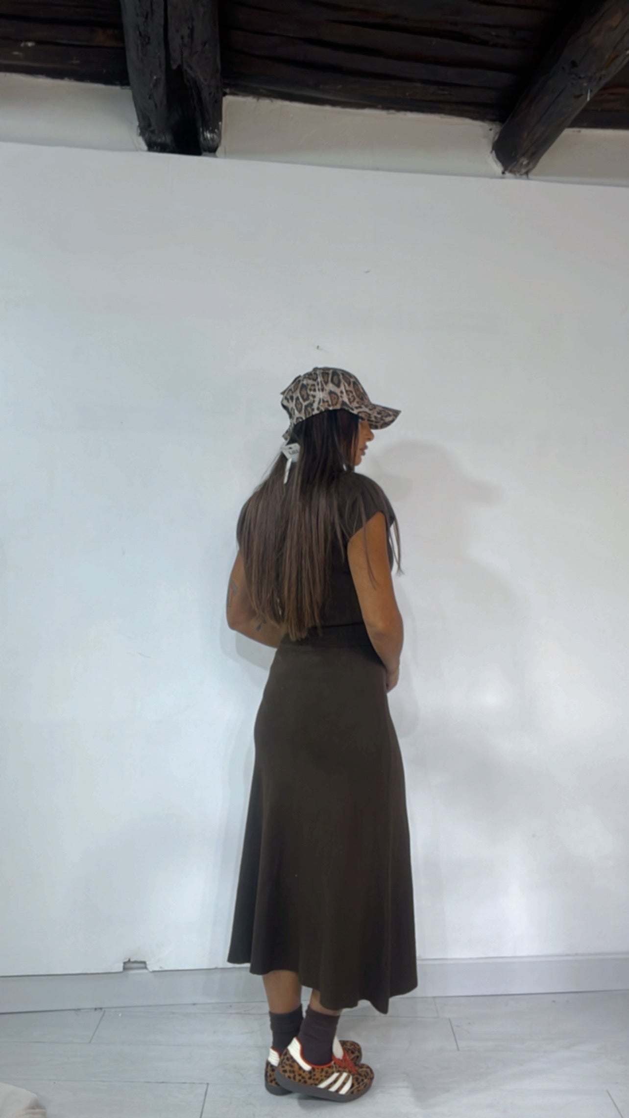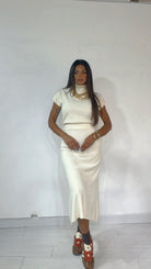 Coord Set in ‘Lanetta’ composto da: Maglia ‘Collo Alto’, mezza manica. Gonna con ‘Elastico’ in vita.