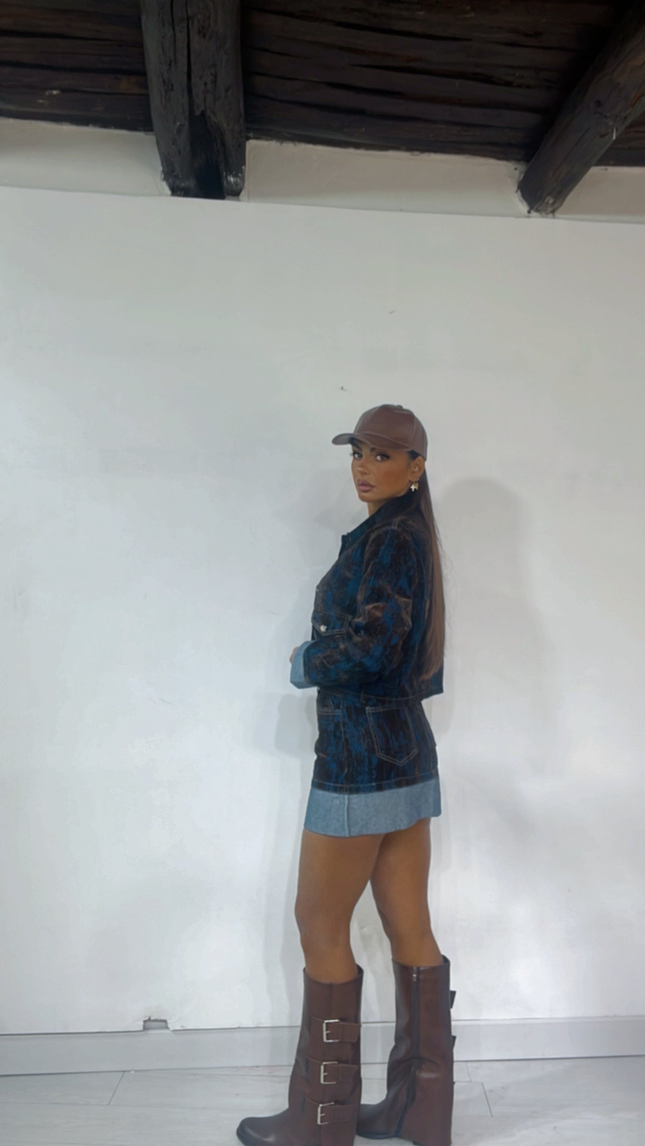 Coord Set ‘Tamascato Marrone’ in ‘Velluto’ composto da: Giubbettino Crop. MiniGonna vita alta, con ‘Risvolto’.