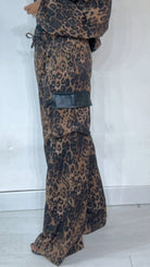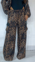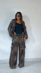 Coord Set fantasia ‘Macù’, Rifiniture in ‘EcoPelle Martellato’ composto da: Bomber Leggermente ‘Crop’. Pantalone con ‘Elastico’ e ‘Laccetti’ da indossare sia vita alta/bassa. Modello ‘Cargo’.