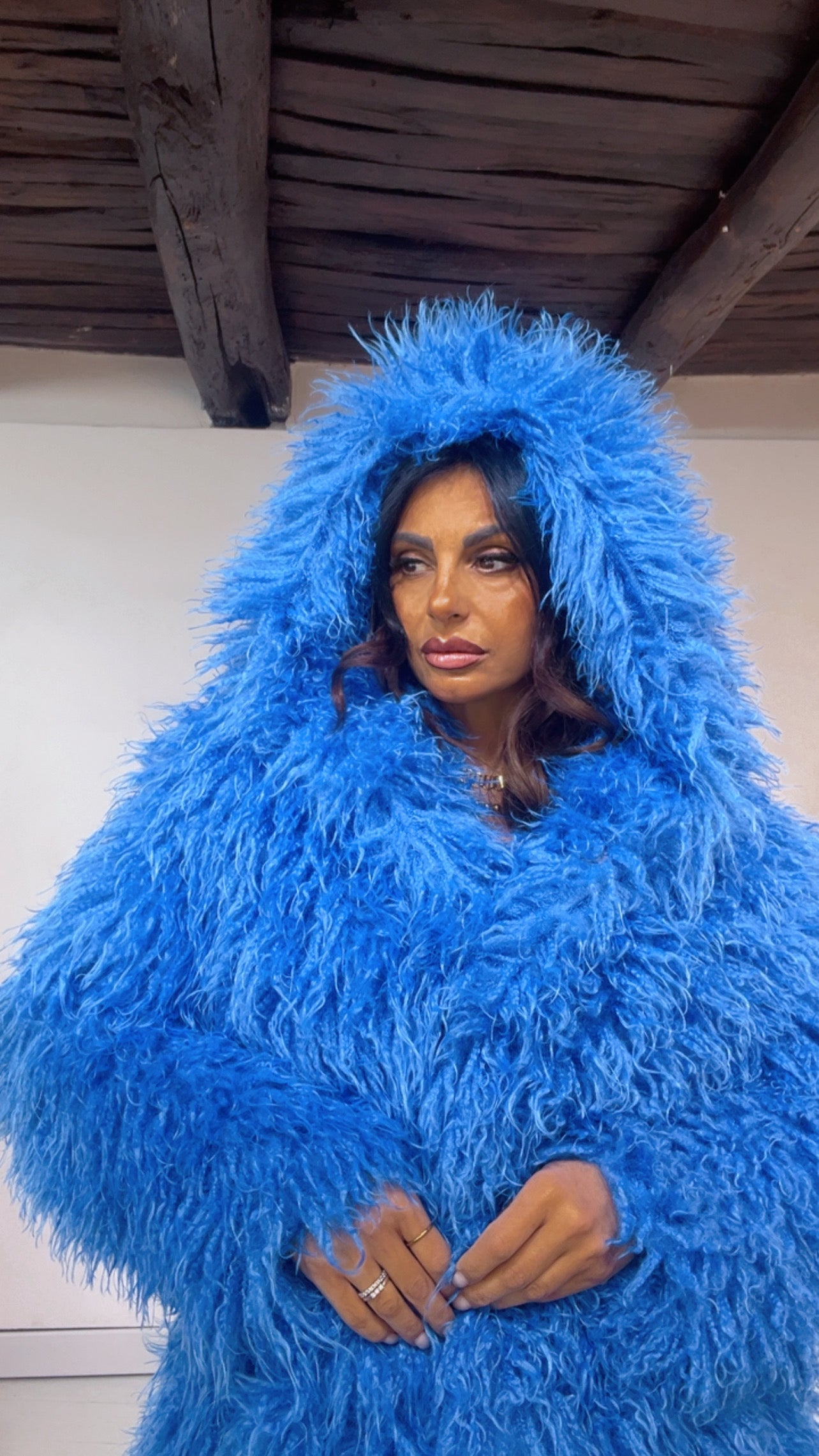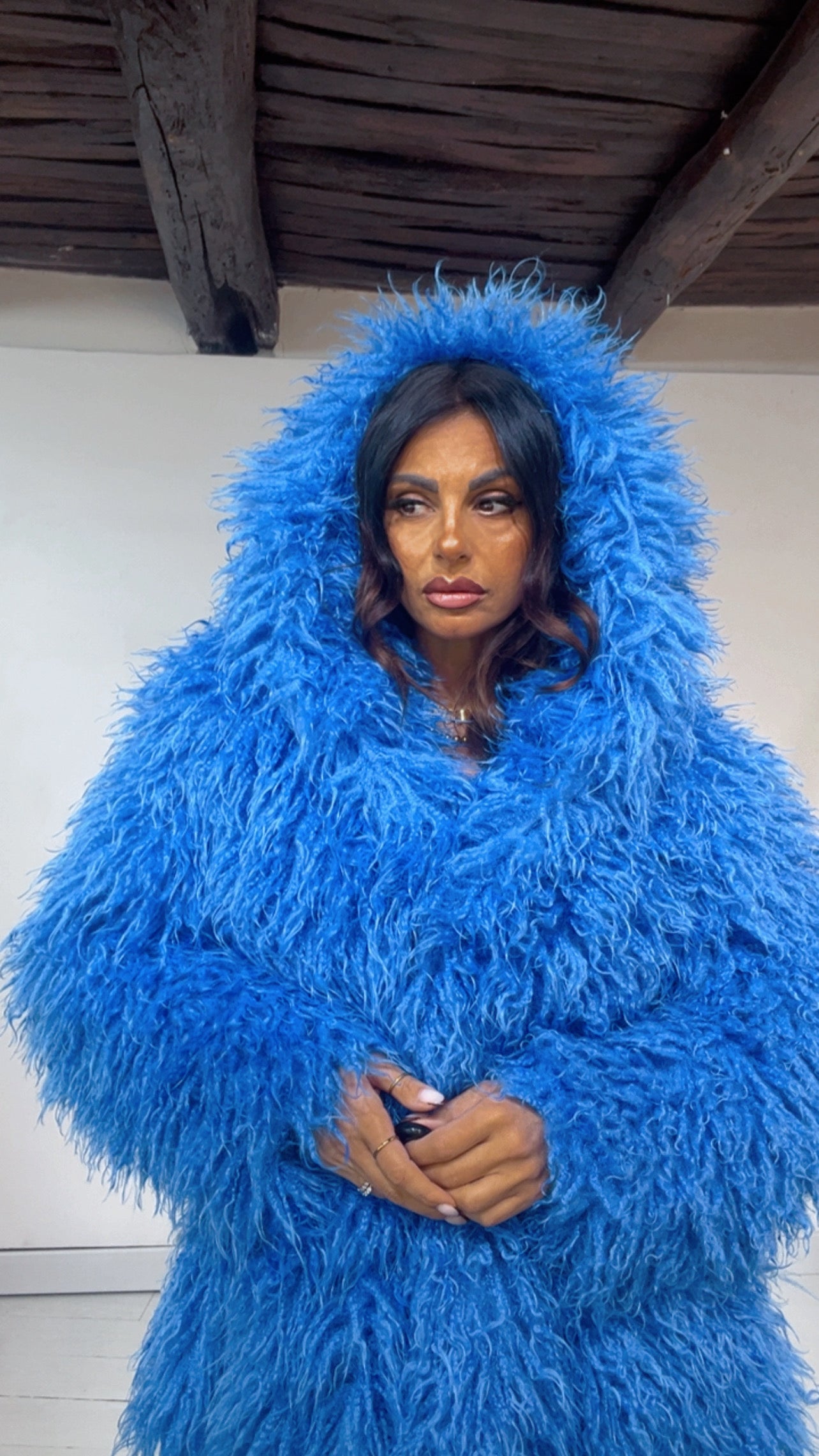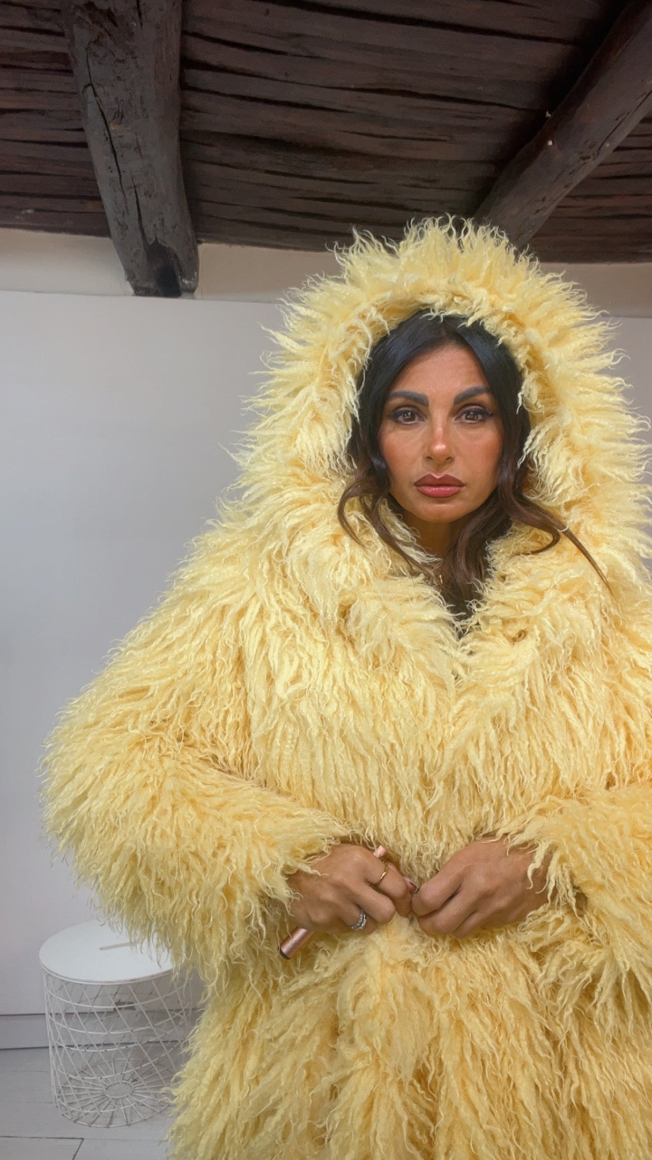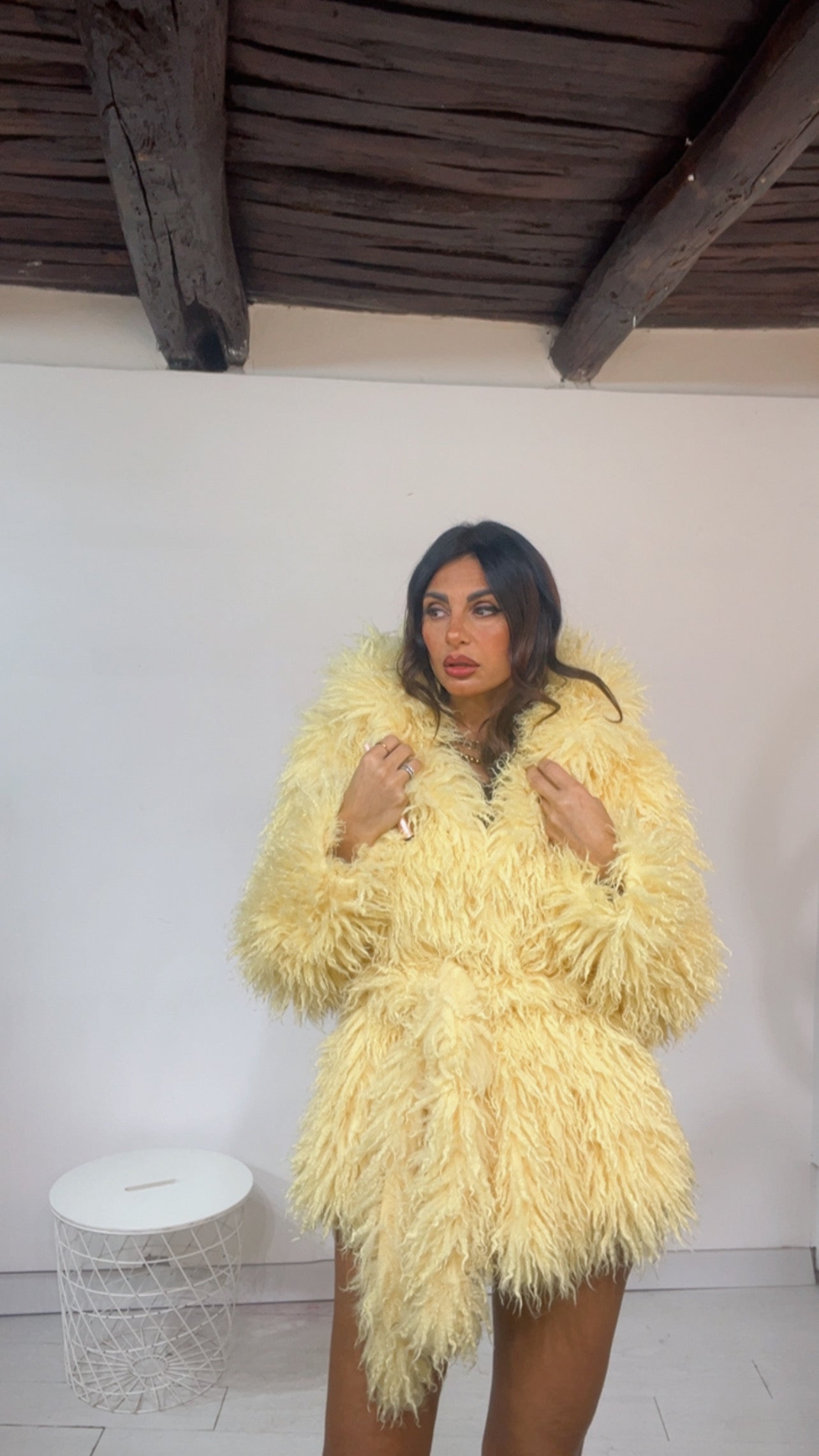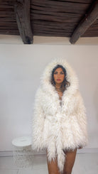 EcoFur con ‘Cappuccio e Cintura in vita’, chiusura due ‘Ciappette a Click’. Modello ‘Mongolia’. Lunghezza ‘Media’.