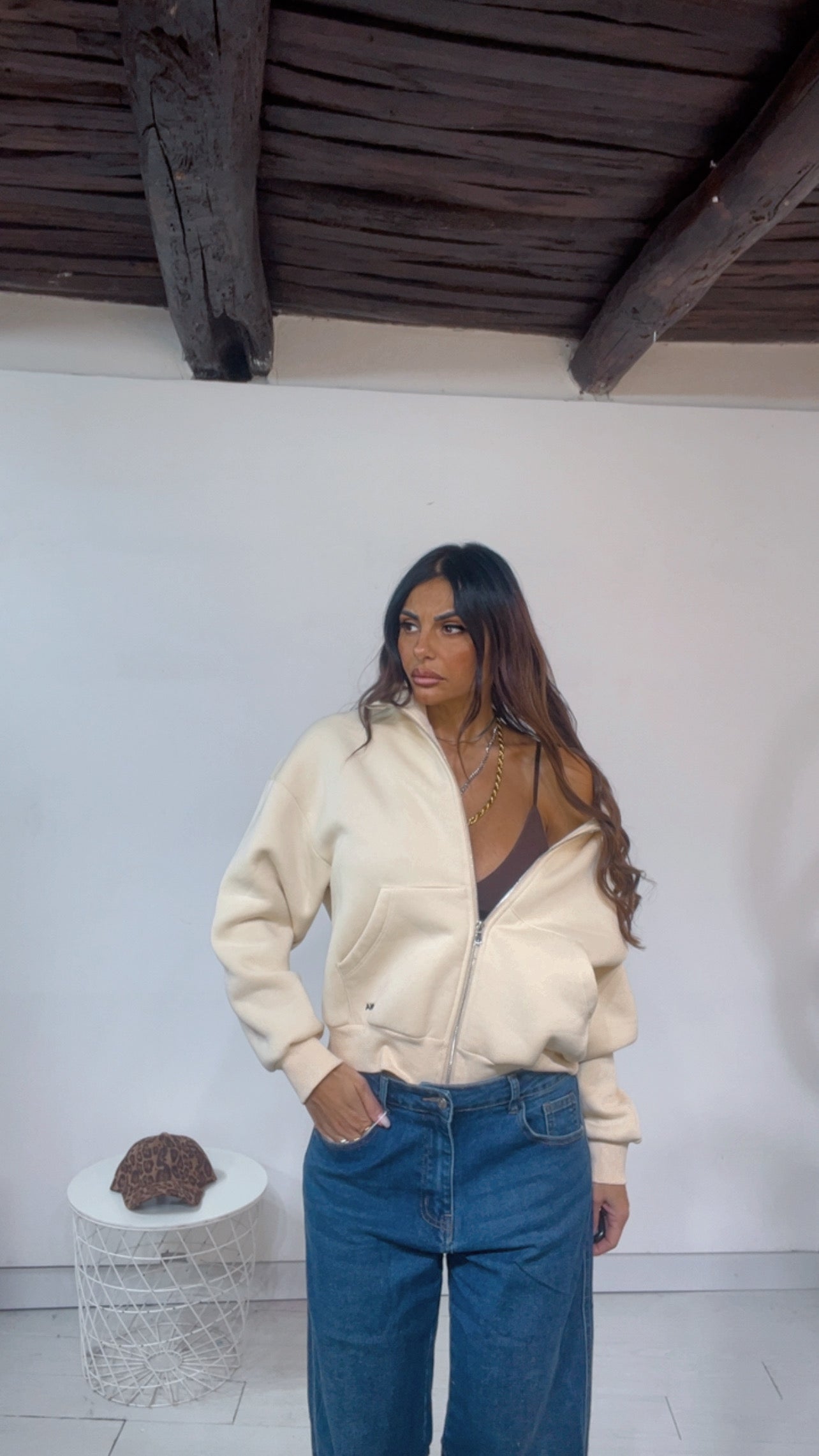 Felpa ‘LUMINA’ chiusura ‘Zio’ con ‘Logo Ricamato’, con ‘Tasconi’. Interno ‘Felpato’.