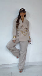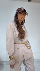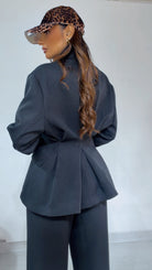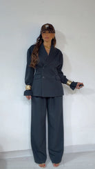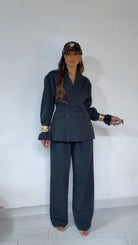 Giacca ‘Simona G’ con ‘Spalla Over’ e ‘Pettine’, non presenta ‘Spalline’. Modello ‘DoppioPetto’. Leggermente ‘Over’.