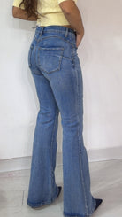 Jeans vita regolare. Modello a ‘Zampa’. Trama ‘Elastica’.