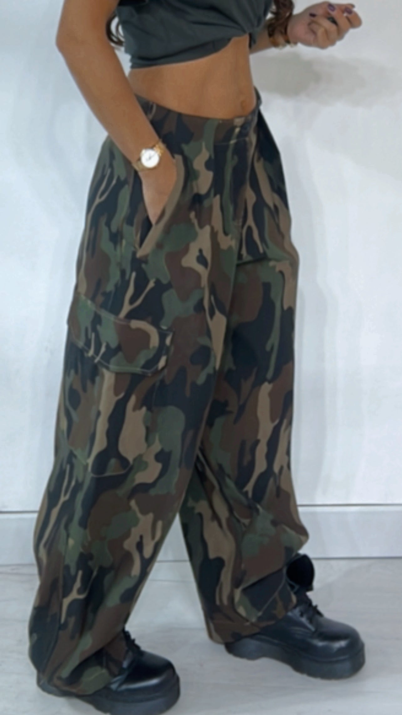 Pantalone ‘LUMINA’, fantasia ‘Camouflage’, ‘Pence’ davanti. Modello ‘Cargo’, ‘Balloon’.