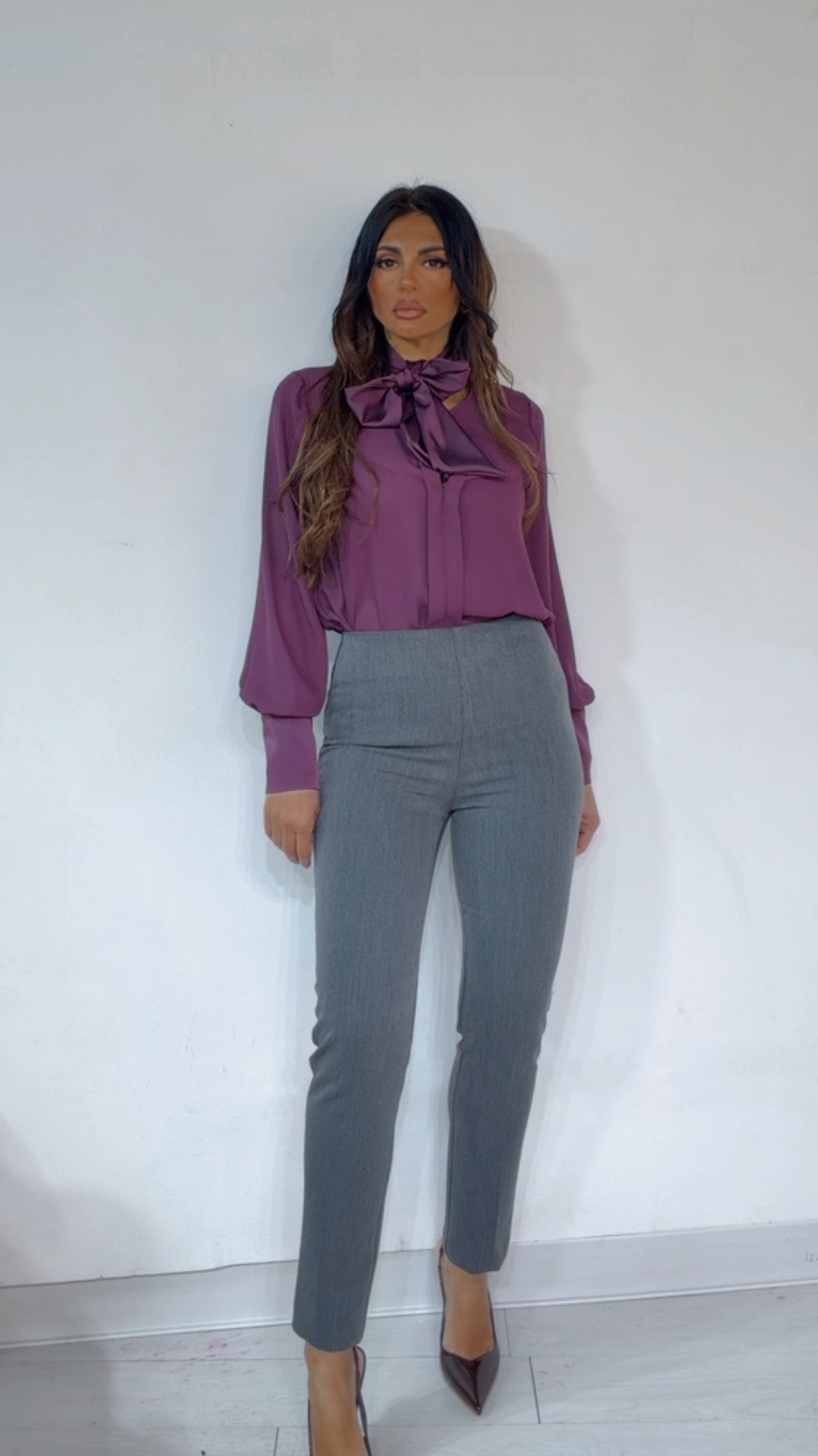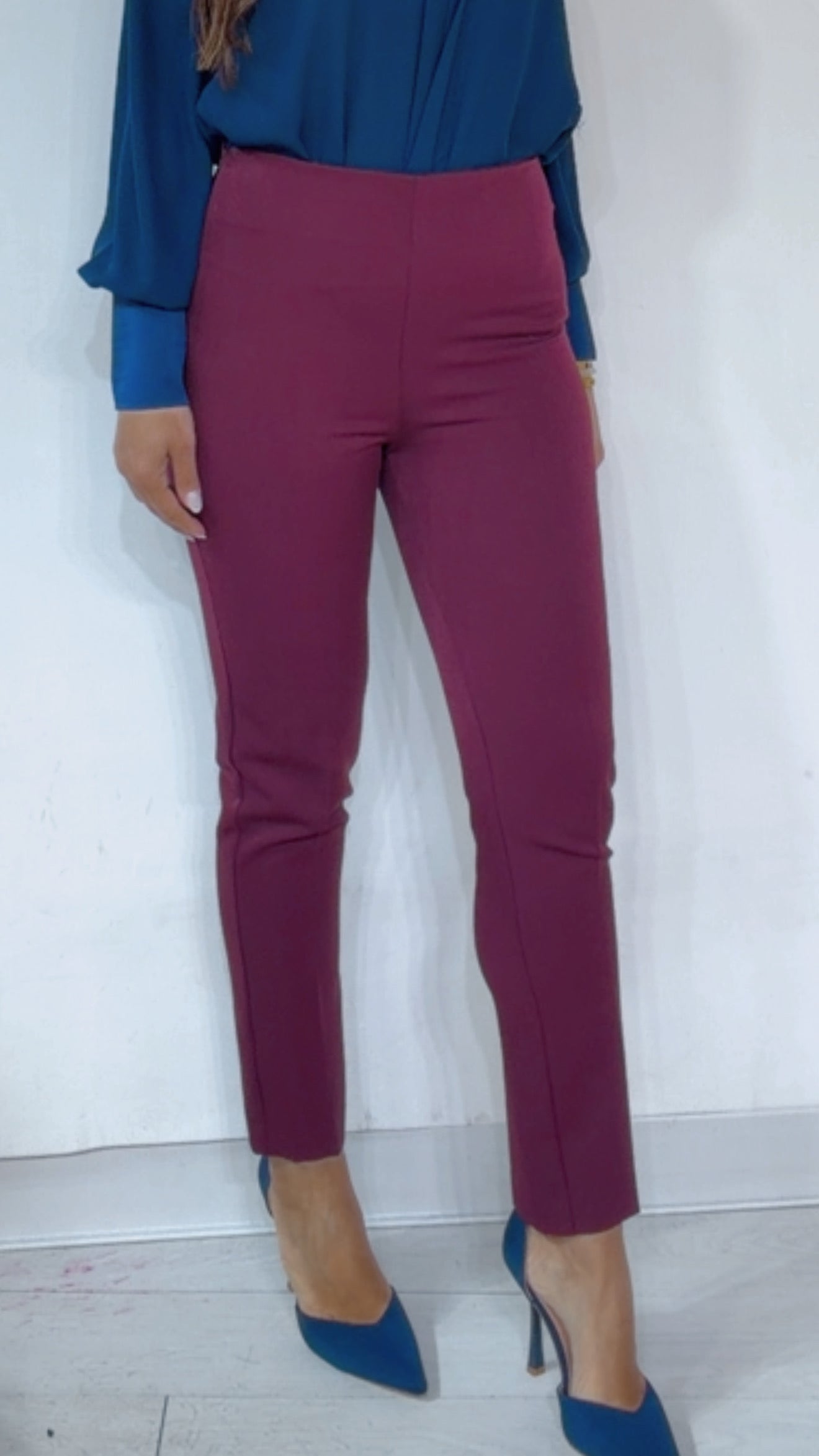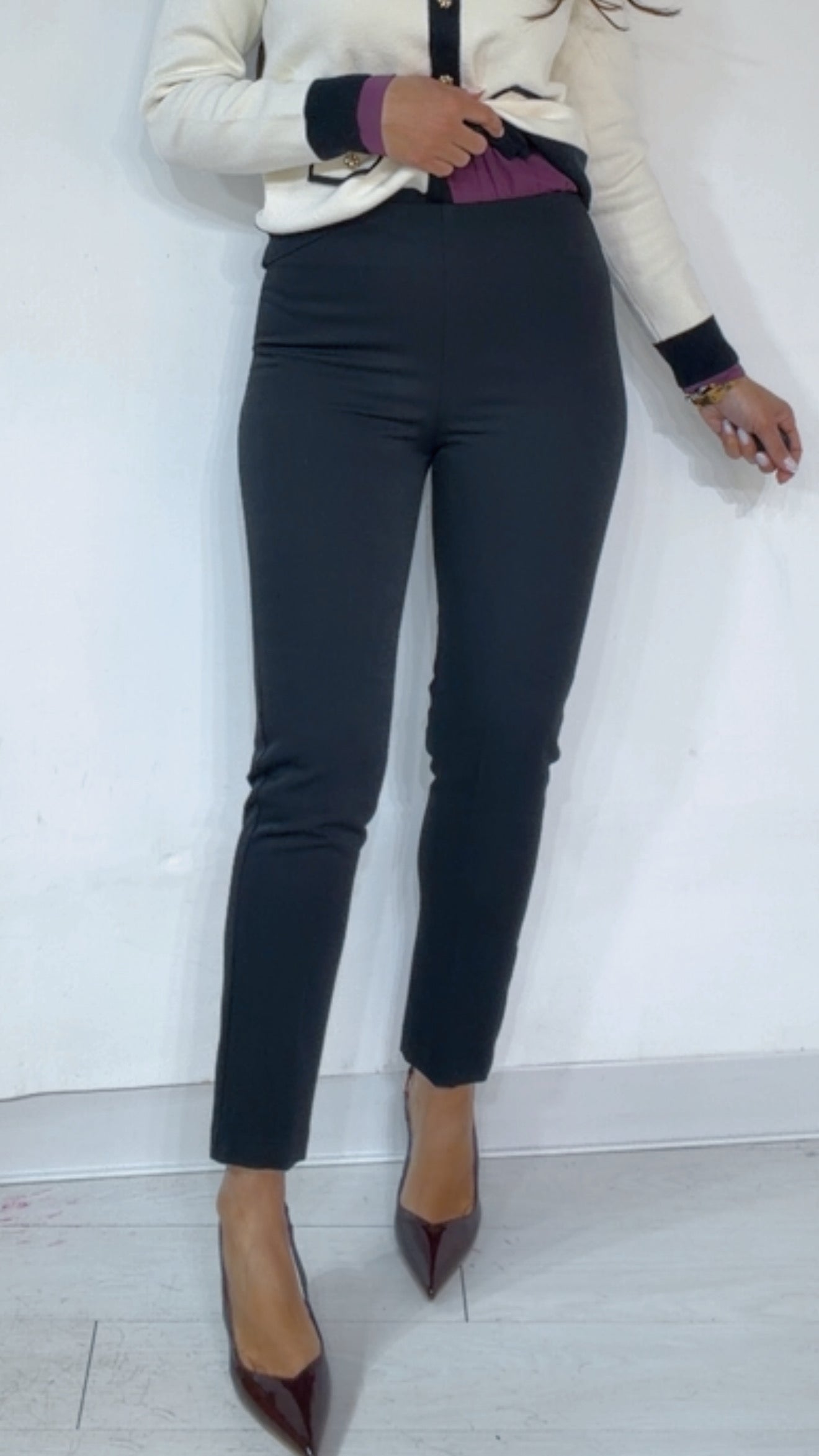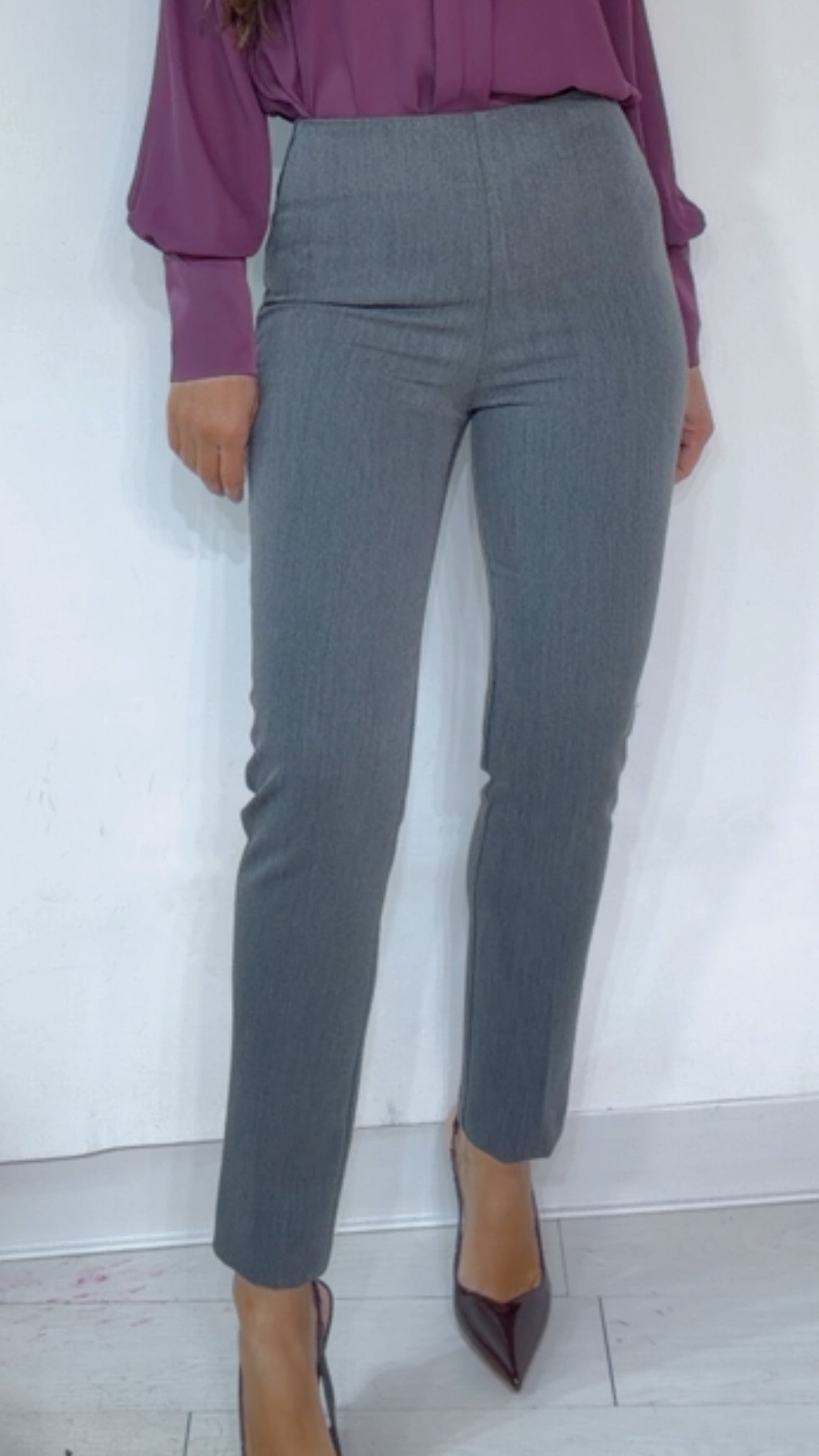 Pantalone ‘Simona G’ vita alta, chiusura ‘Zip Invisibile’ laterale. Modello alla ‘Caviglia’.