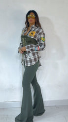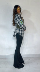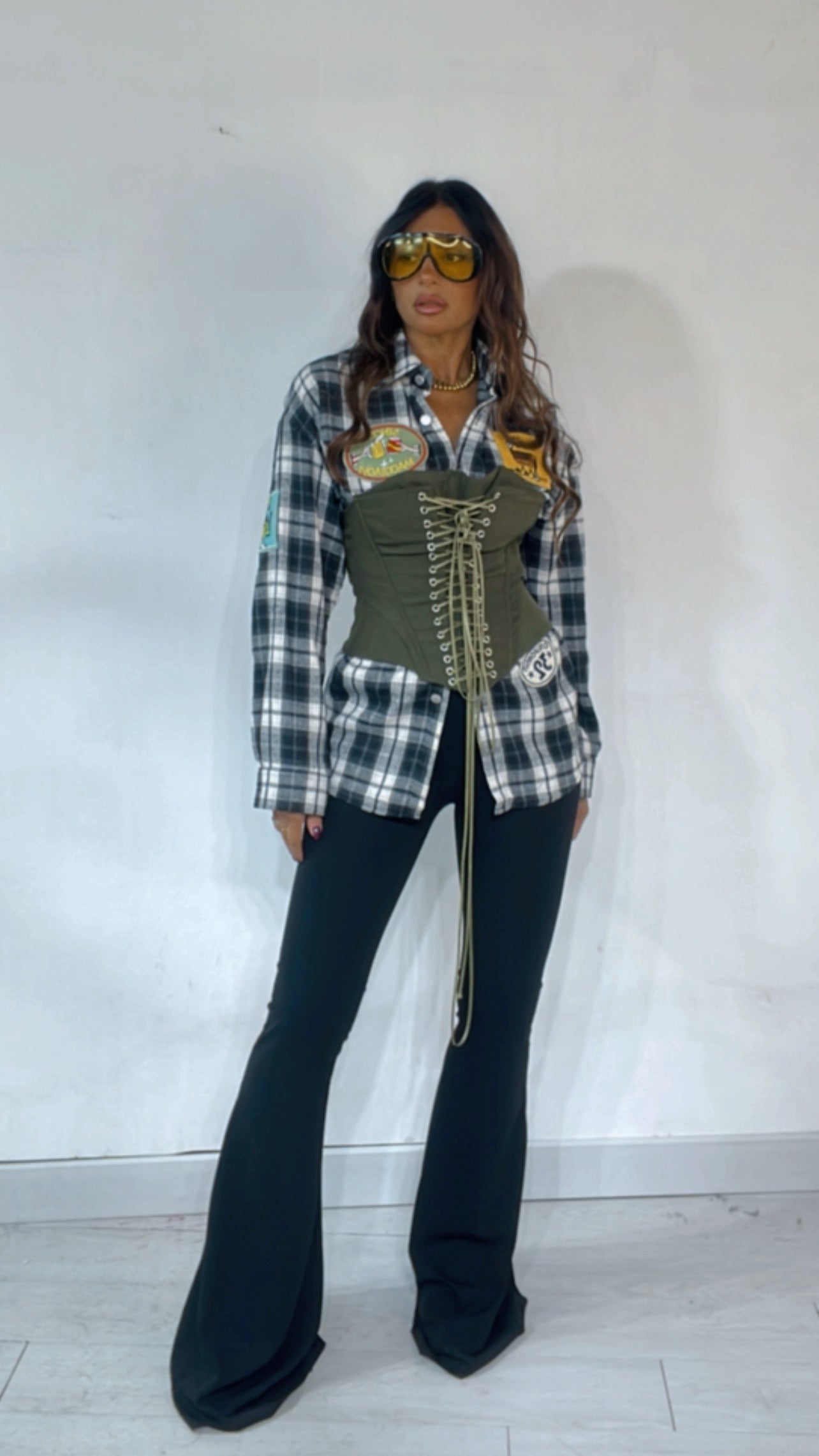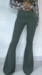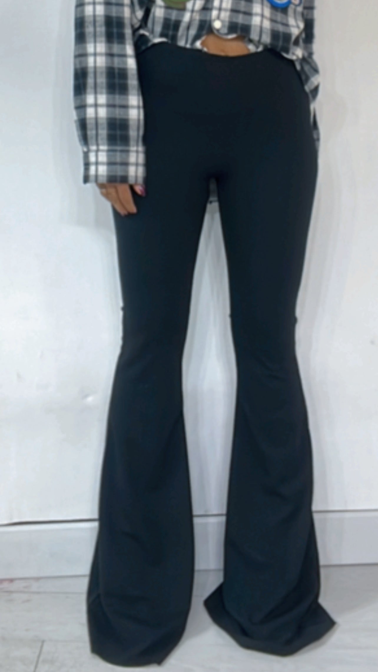 Pantalone vita alta. Modello a ‘Zampa’, Elastico’.