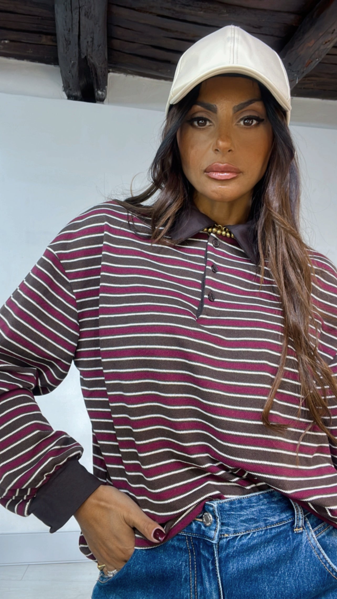 Polo fantasia ‘Rows’. In ‘Cotone’. Modello Leggermente Over’.