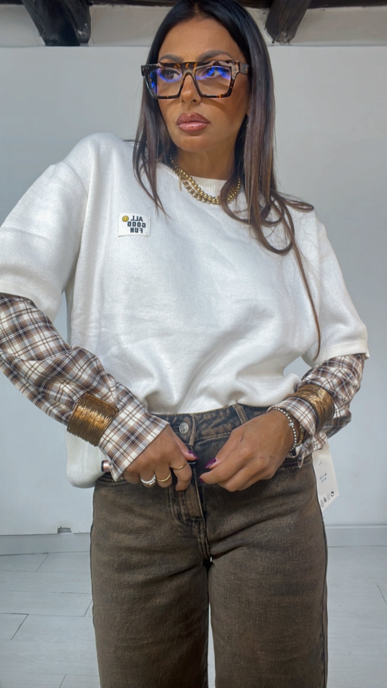 Pull manica con ‘Manicotti’ in camicia ‘Leggermente Flanellata’. In ‘Lanetta’.