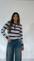 Polo fantasia ‘Rows’. In ‘Lanettina’. Modello Leggermente Over’.