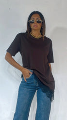 T-Shirt ‘LUMINA’. ‘Asimmetrica’. In ‘Cotone’ con ‘Inserti’ in ‘Pizzo’.