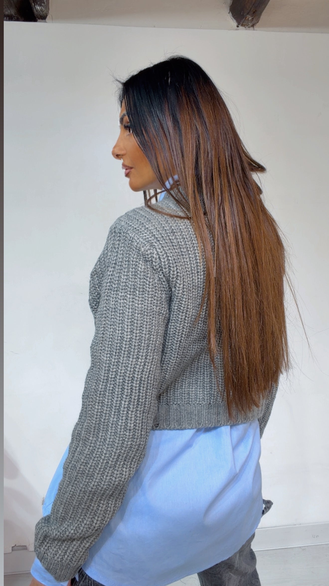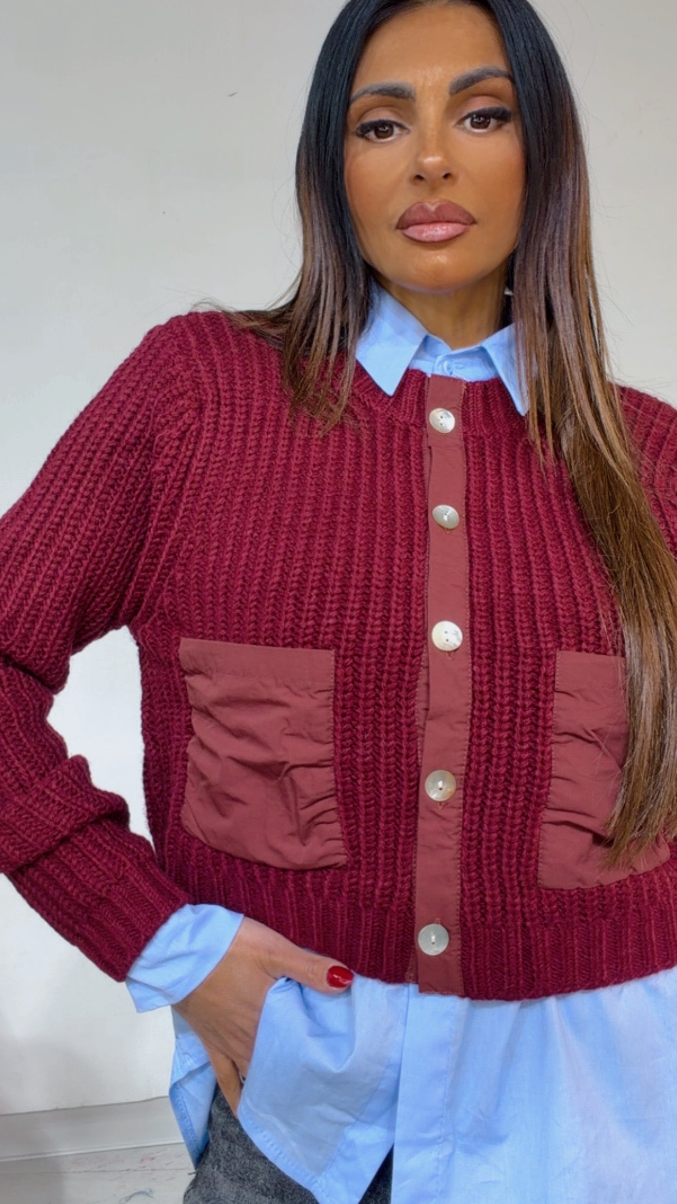 Cardigan ‘LUMINA’, con ‘Tasconi’ davanti. In ‘Lana Morbidissima’.