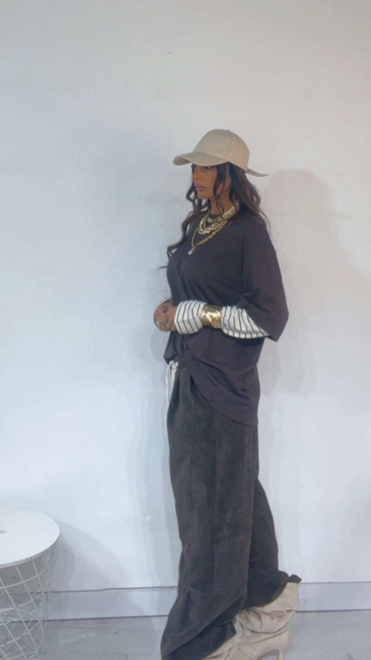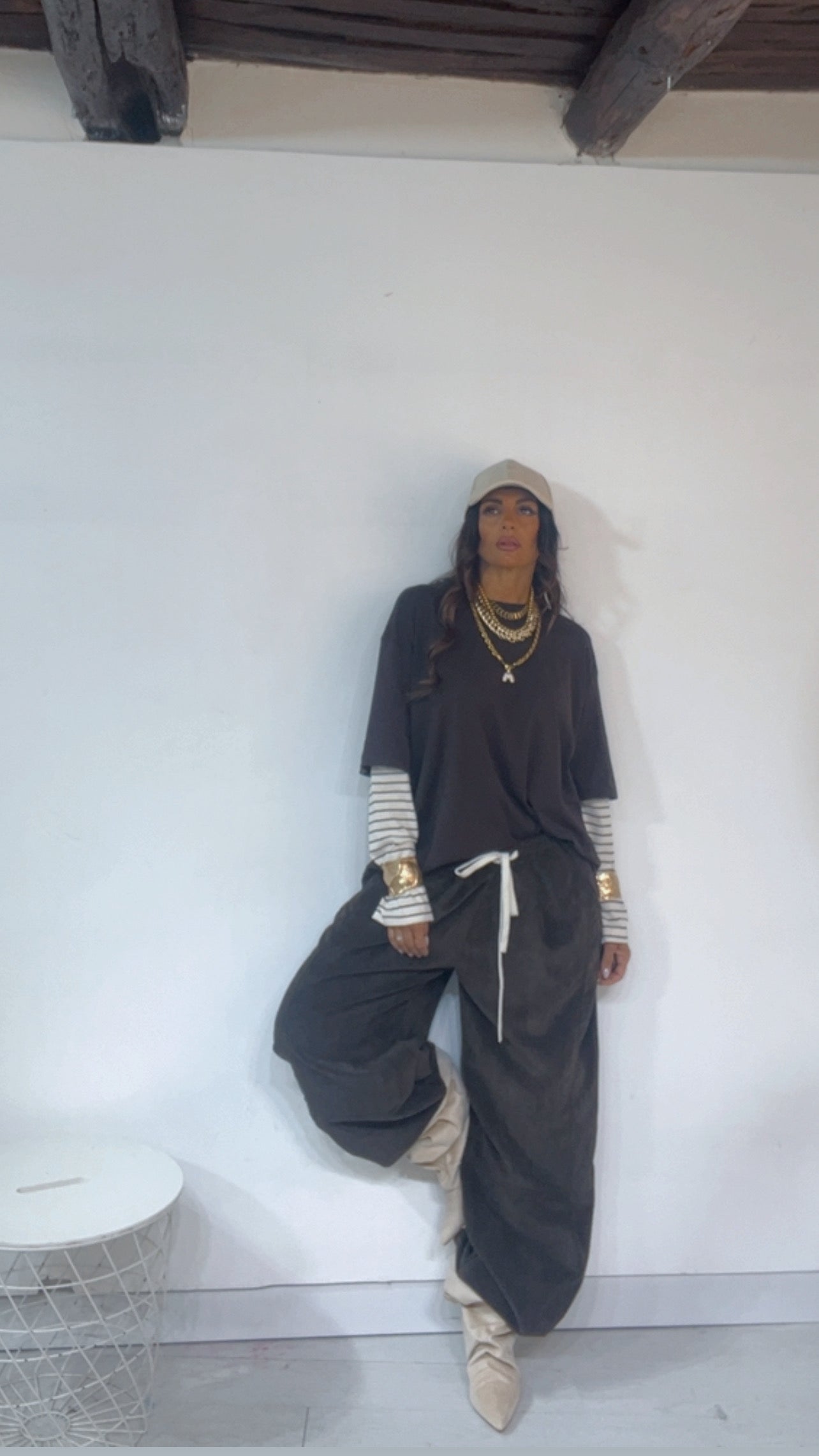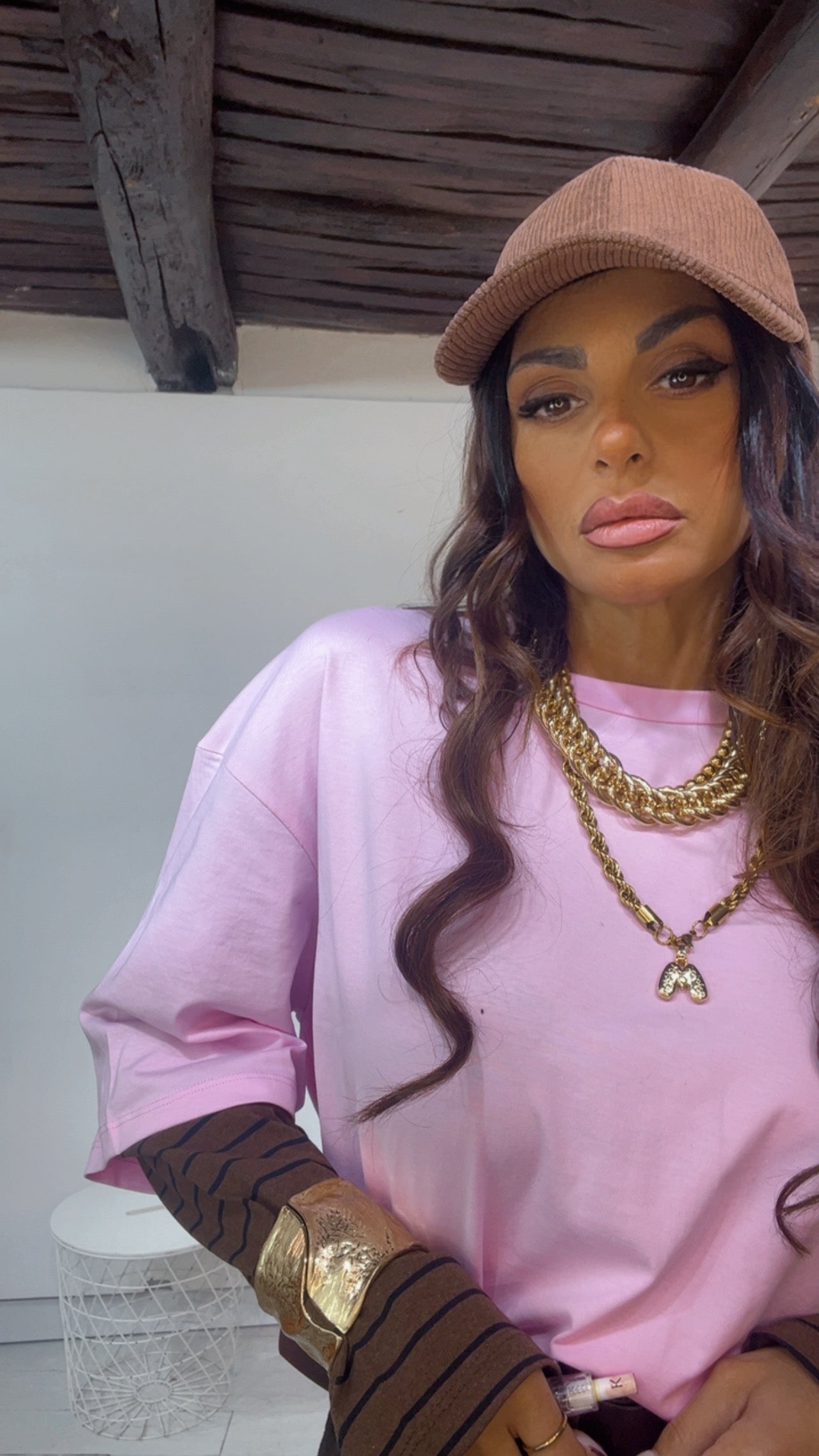 Maxi-Shirt ‘Girocollo’ con ‘Manicotti’ a contrasto. Modello ‘Over’.